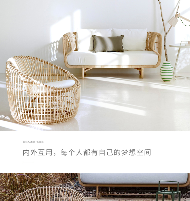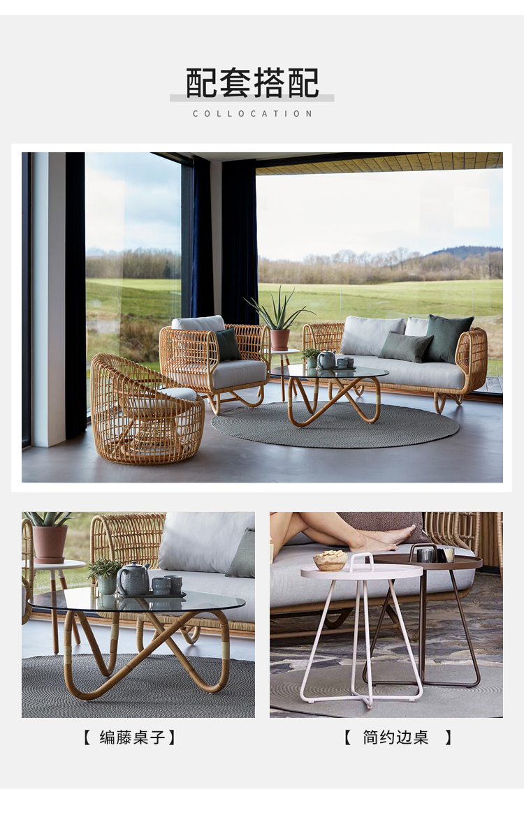 户外休闲藤编沙发组合设计师防水防晒露台阳光房别墅酒店藤椅家具