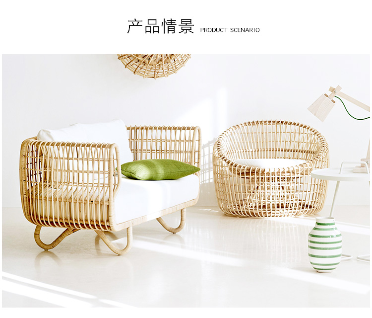 屋外籐編みソファホテル民宿テラス別荘ガーデン籐椅子東南アジアシンプル籐ソファ防水