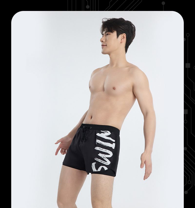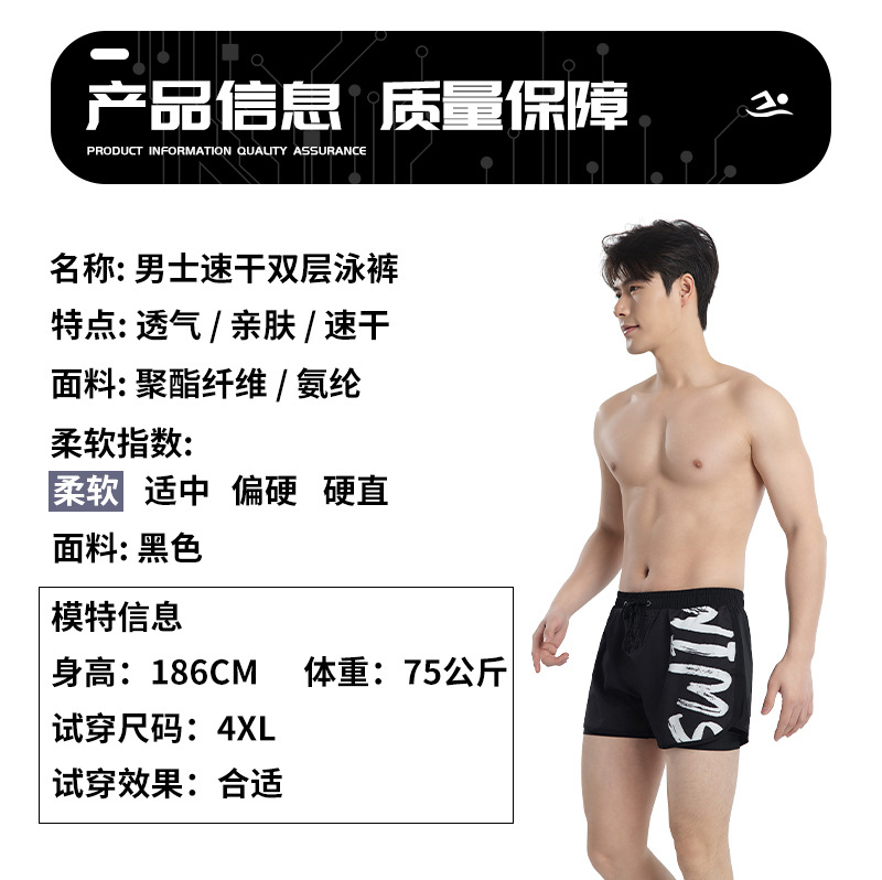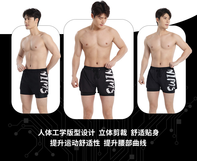 水泳パンツ男性新型男性スポーツビーチ平角水泳パンツ水着二重速乾ゆるい温泉水泳装備