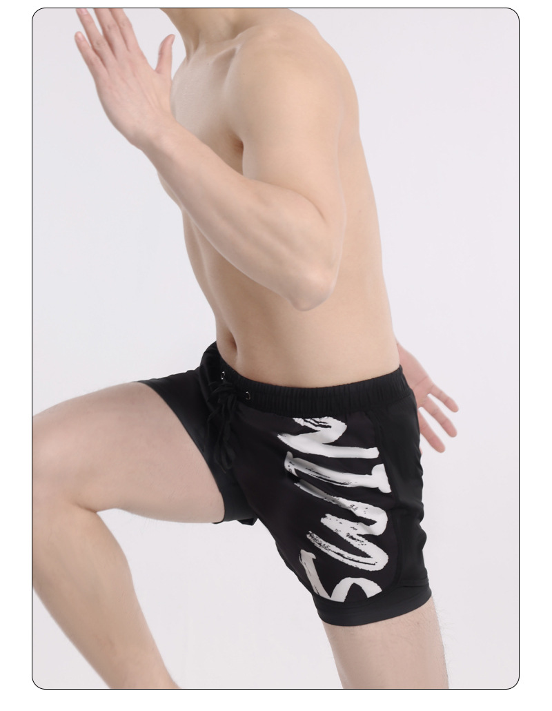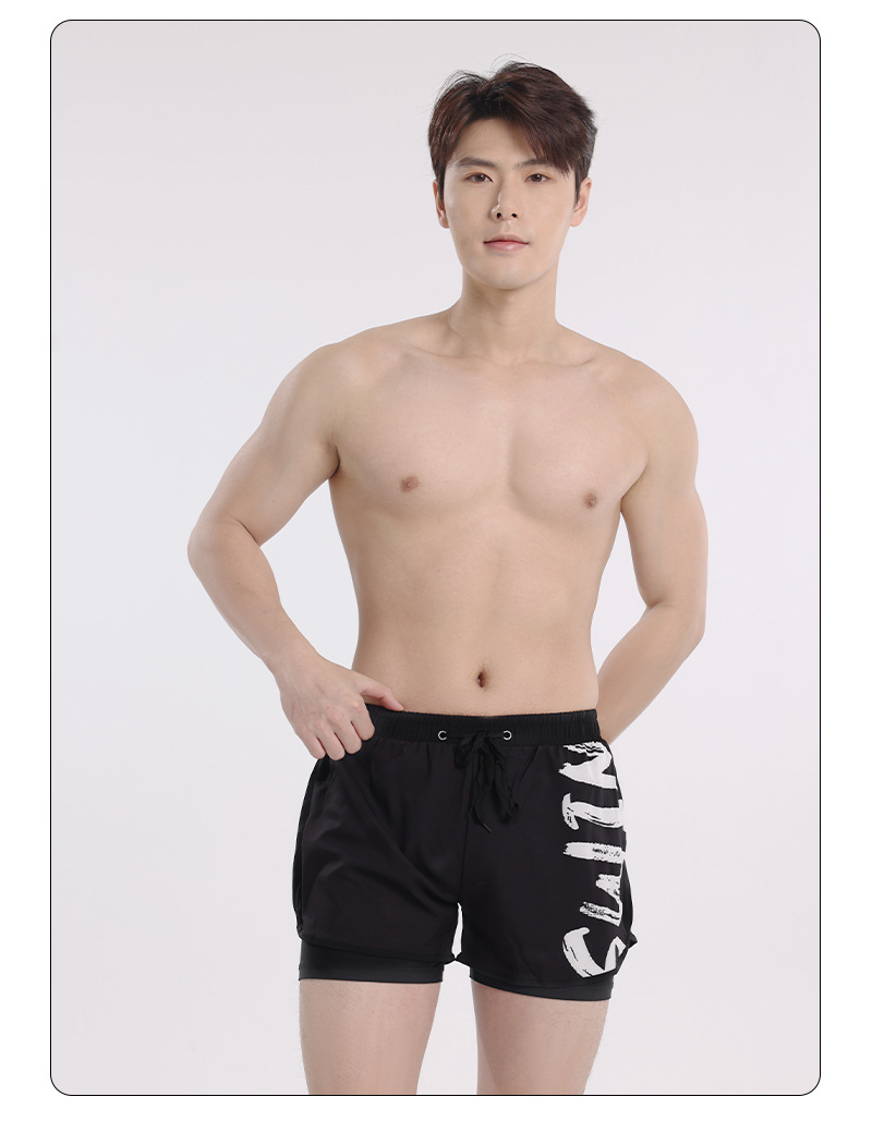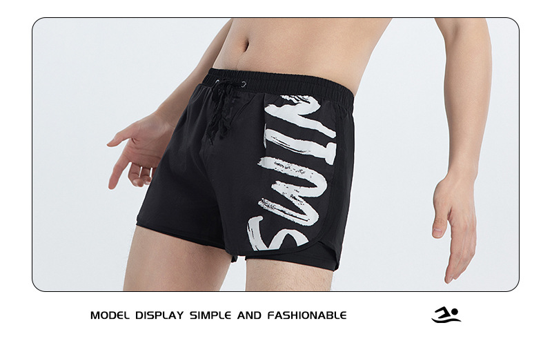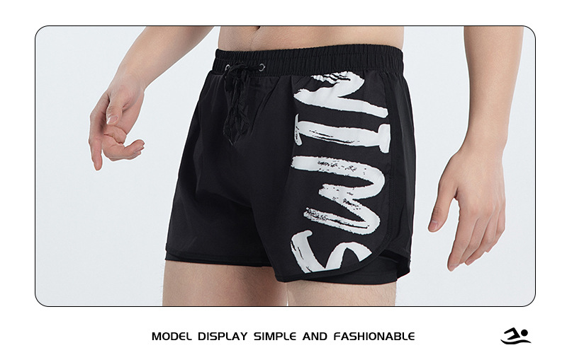 水泳パンツ男性は気まずい二重ビーチ水泳温泉男性専門の平角ゆるい速乾ショート水泳パンツを防ぐ