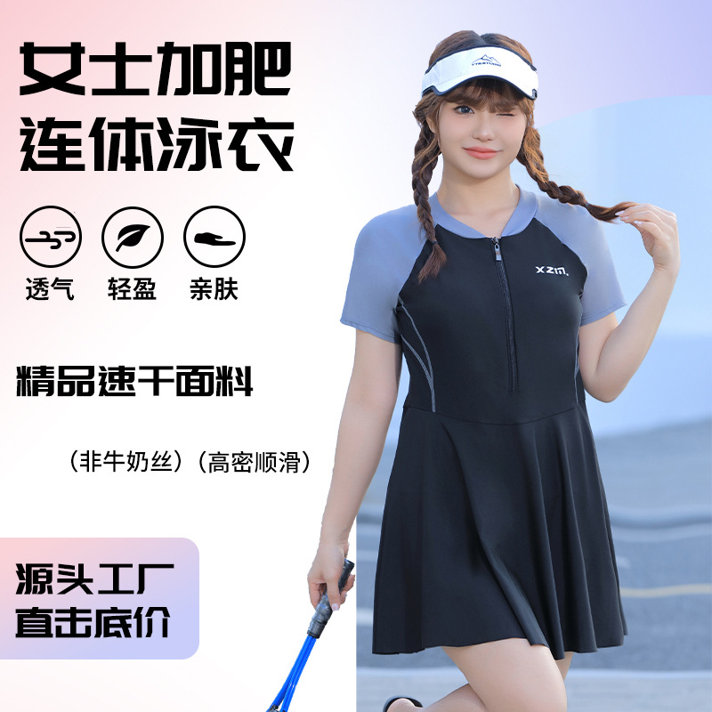 大きいサイズの水着の女性の200斤の連体の学生の運動の保守的な2025新型は腹を遮ってやせて太っているmmの温泉の水着を現します。