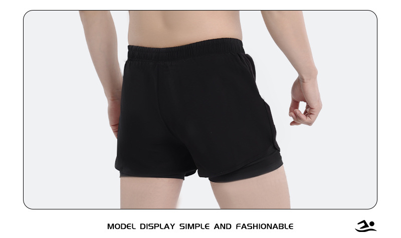 メンズ二層水泳パンツ、速乾性、ゆったり、恥ずかしくない水泳パンツ、スポーツフィットネスランニングショーツ、ビーチサーフィンホットスタイル
