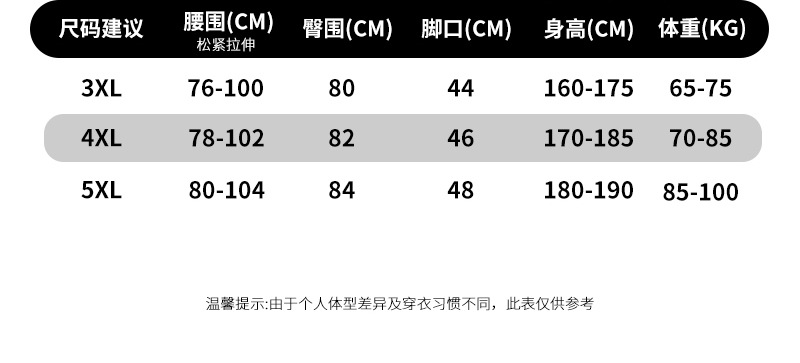サイズ 3XL100-130,4XL 130-150,5XL 150-180