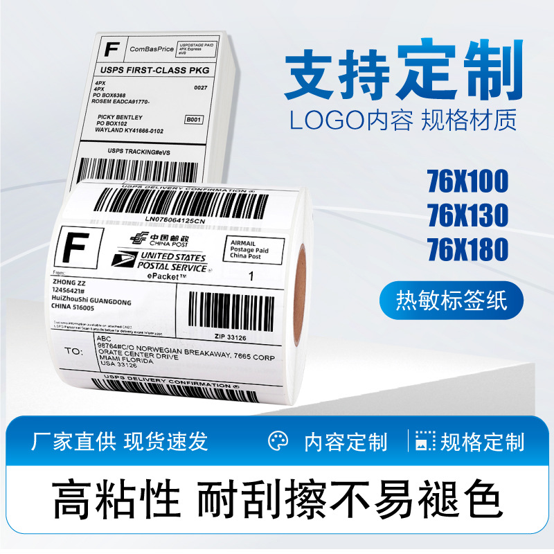 携帯型宅配便シングル感熱ラベル紙76*130空白宅配便物流面シングル感熱印刷紙