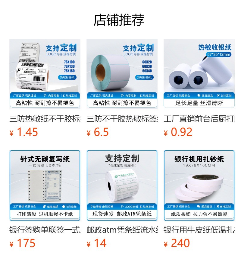 感熱レジ用紙 57 × 50 レシート印刷用紙 80 × 80 × 60 × 50 Meituan テイクアウト印刷用紙スーパーマーケットレジ