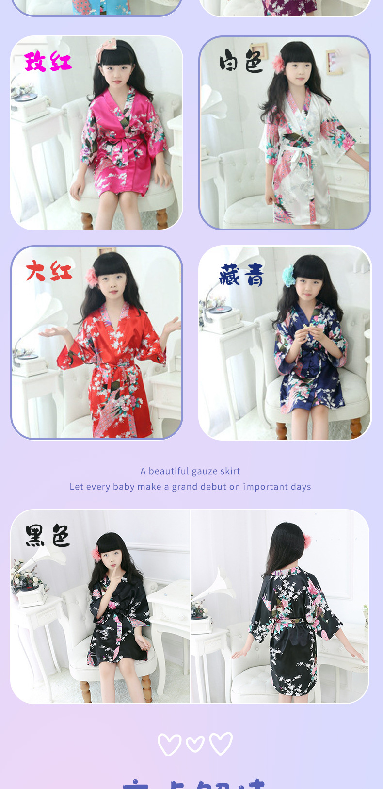新しい子供の着物のプリントの日本式のバスローブの女の子の王女のスカートのショーの服の気質のかわいい蝶結び