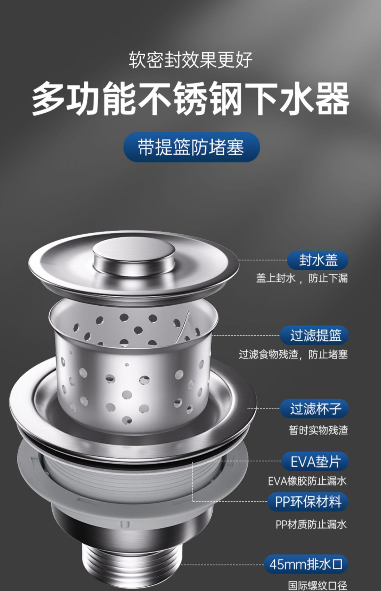 304ステンレス台所シンク下水器セット防臭下水管洗面器下水ヘッド部品単槽双