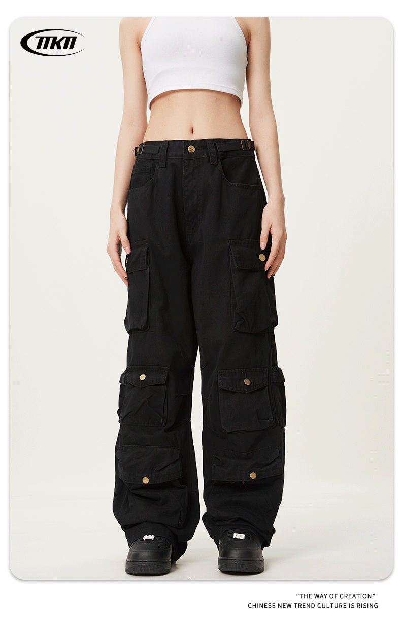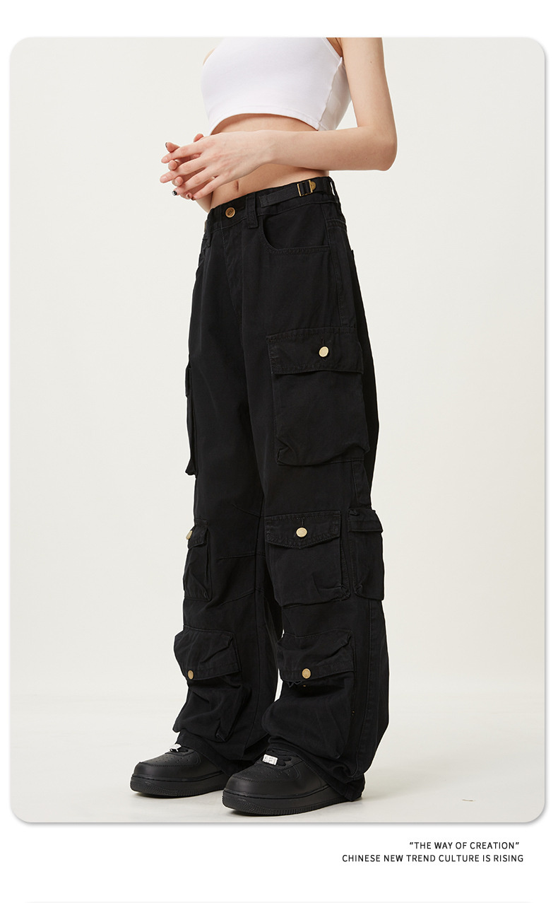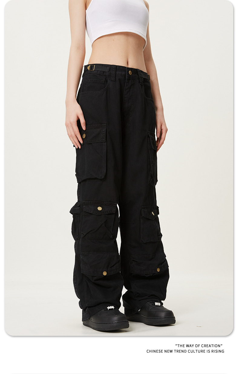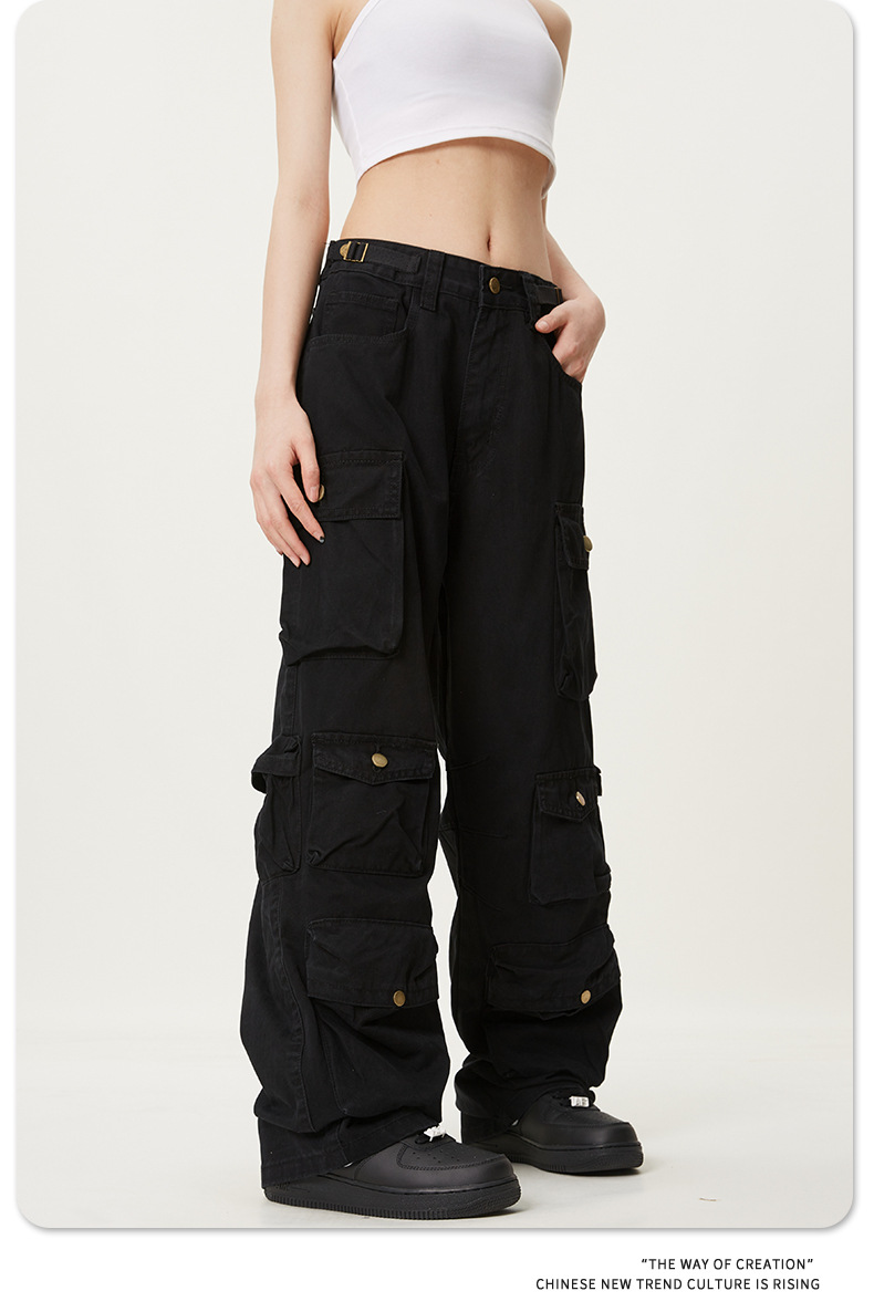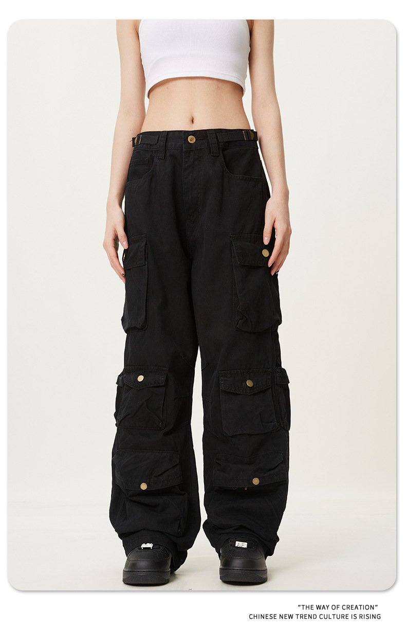 11KNアメリカレトロ高街工装ズボン多ポケットデザイン感広脚カジュアルパンツ男女ゆるいモップズボン