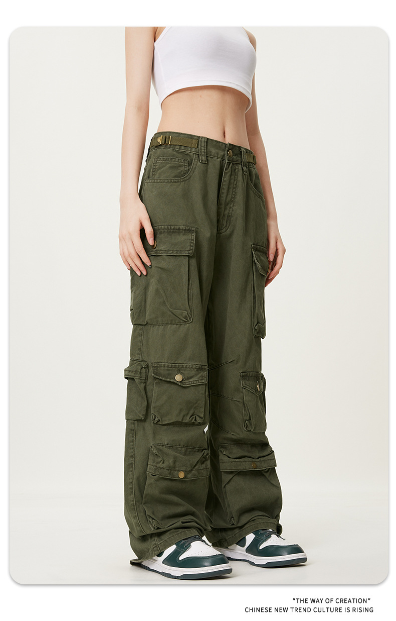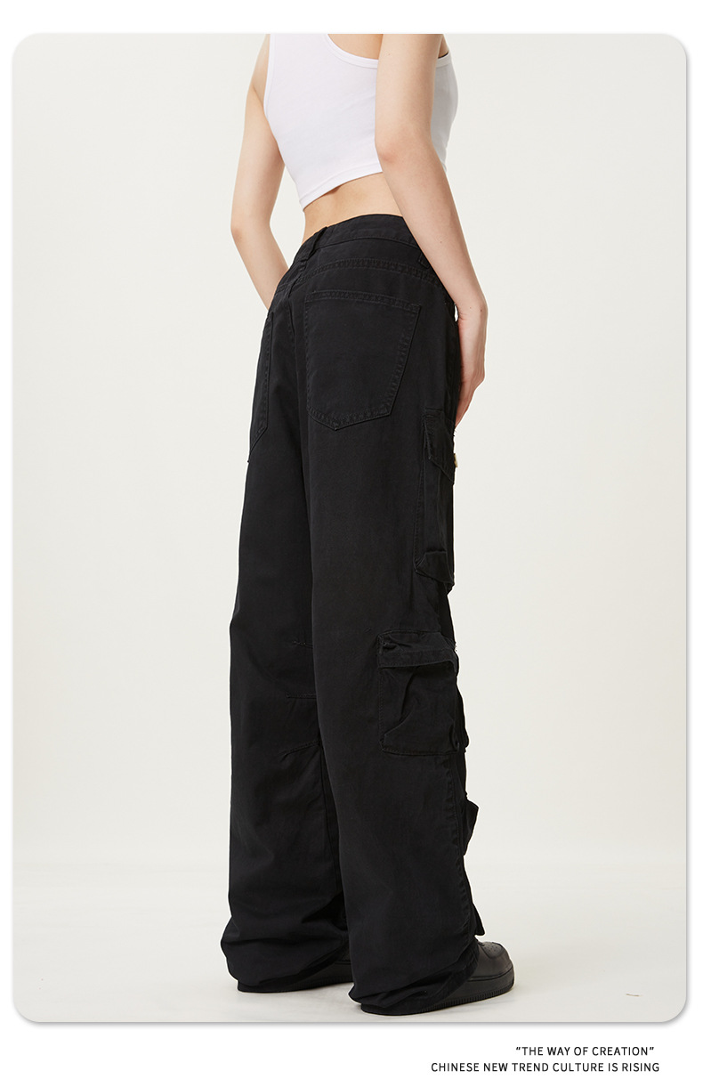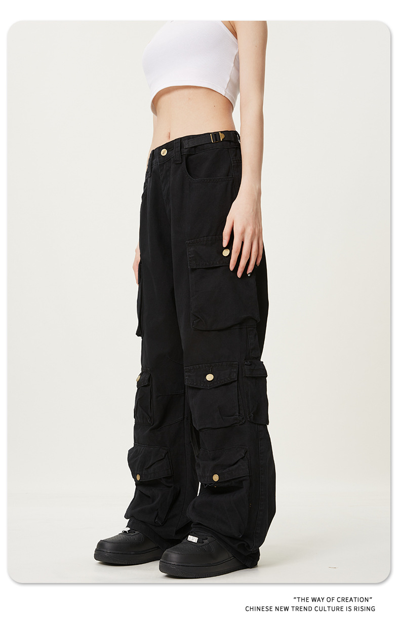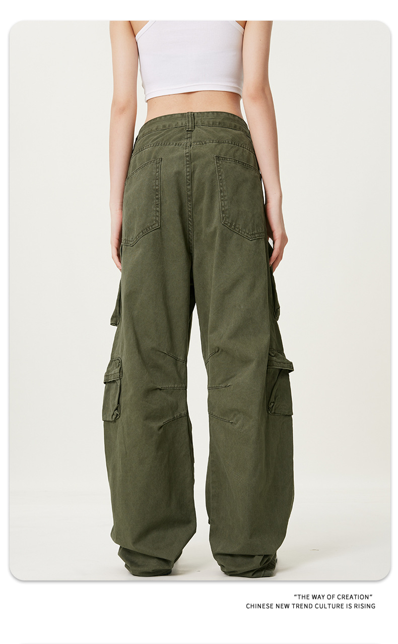 11KNアメリカレトロ高街工装ズボン多ポケットデザイン感広脚カジュアルパンツ男女ゆるいモップズボン