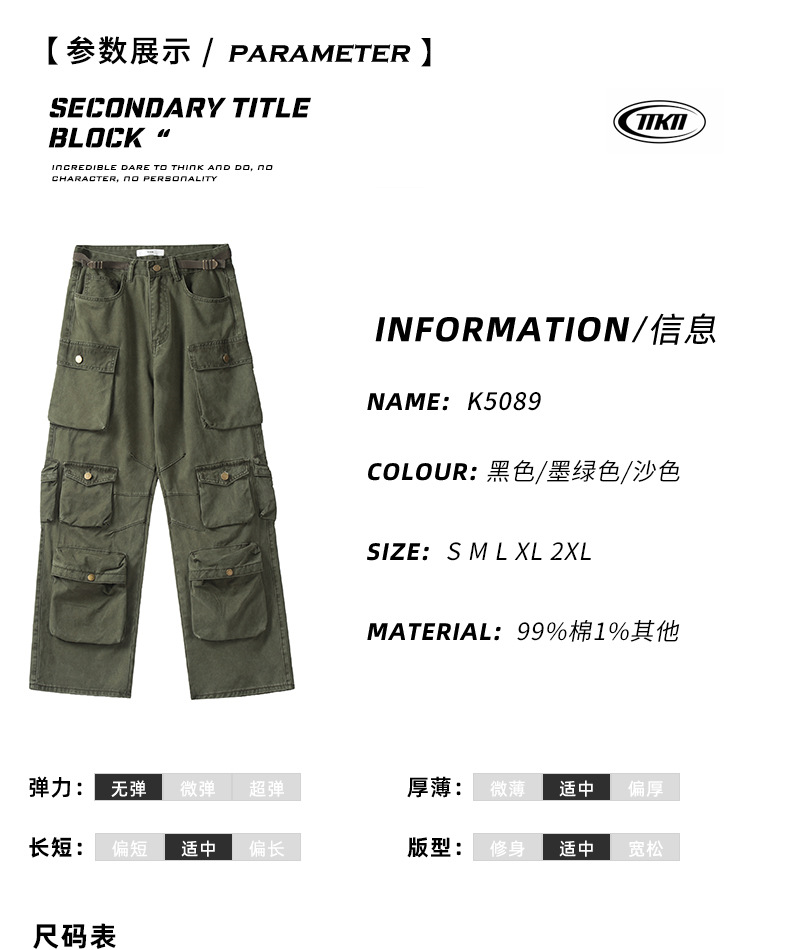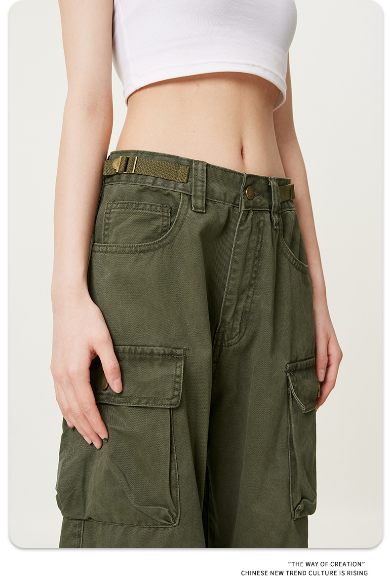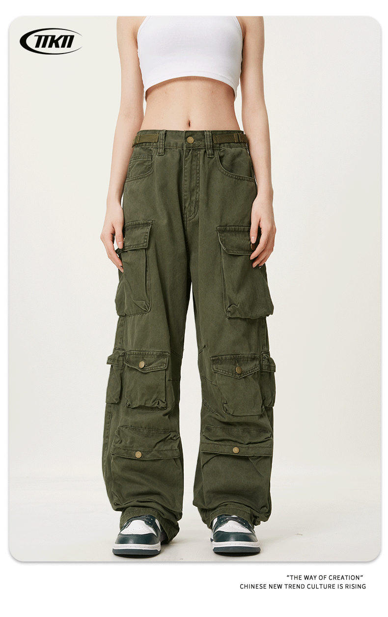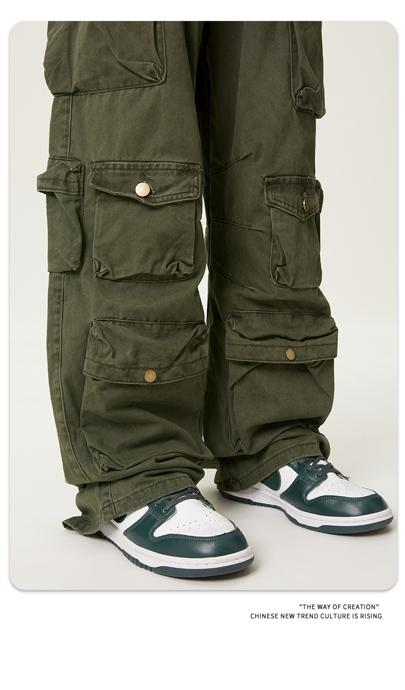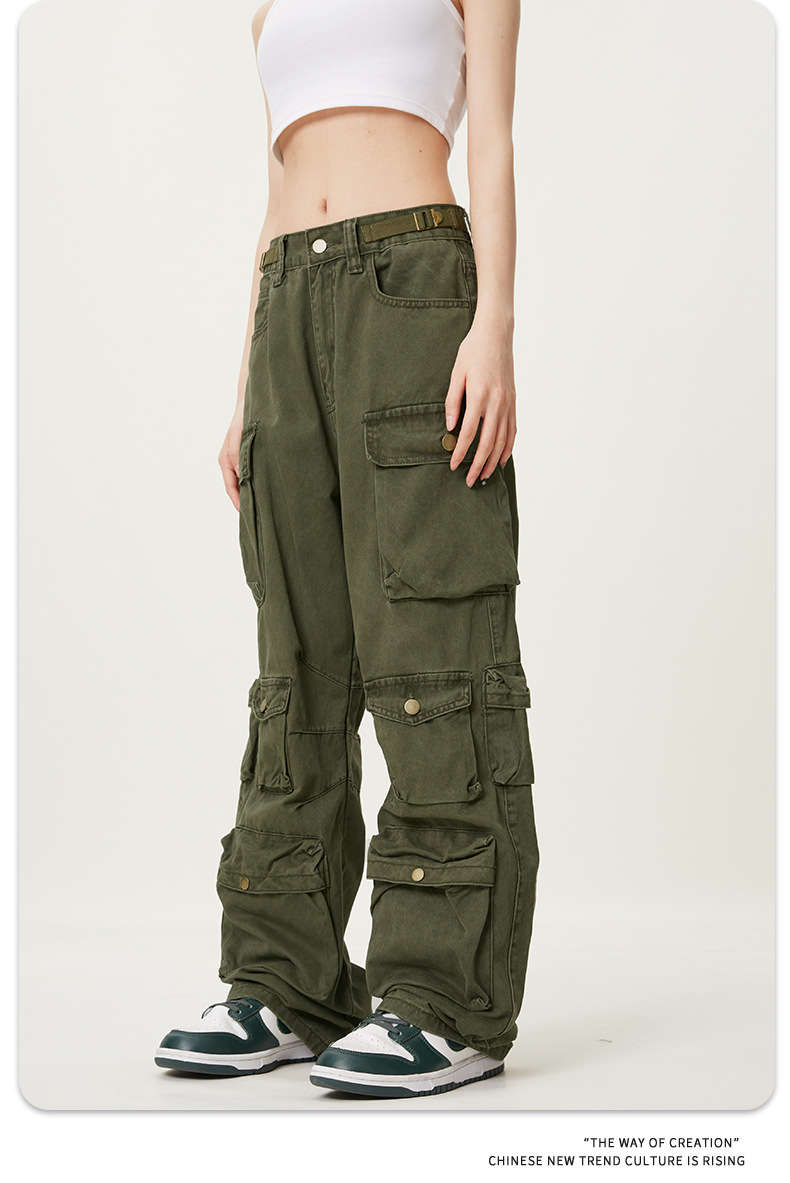 11KNアメリカレトロ高街工装ズボン多ポケットデザイン感広脚カジュアルパンツ男女ゆるいモップズボン