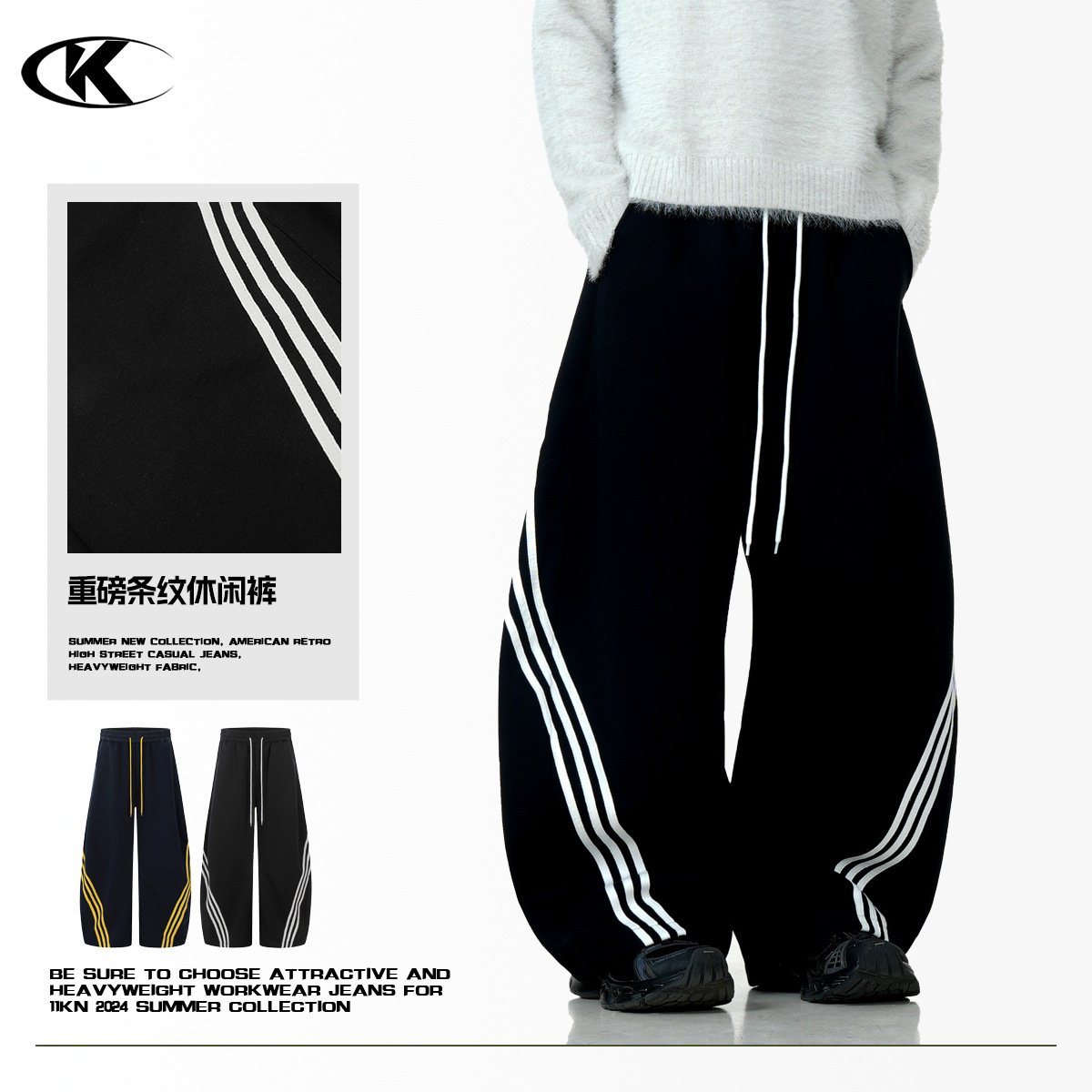 11KNアメリカのレトロなデザイン感の三条の鉄棒の衛ズボンの女性の街頭の風の運動はゆったりしています。