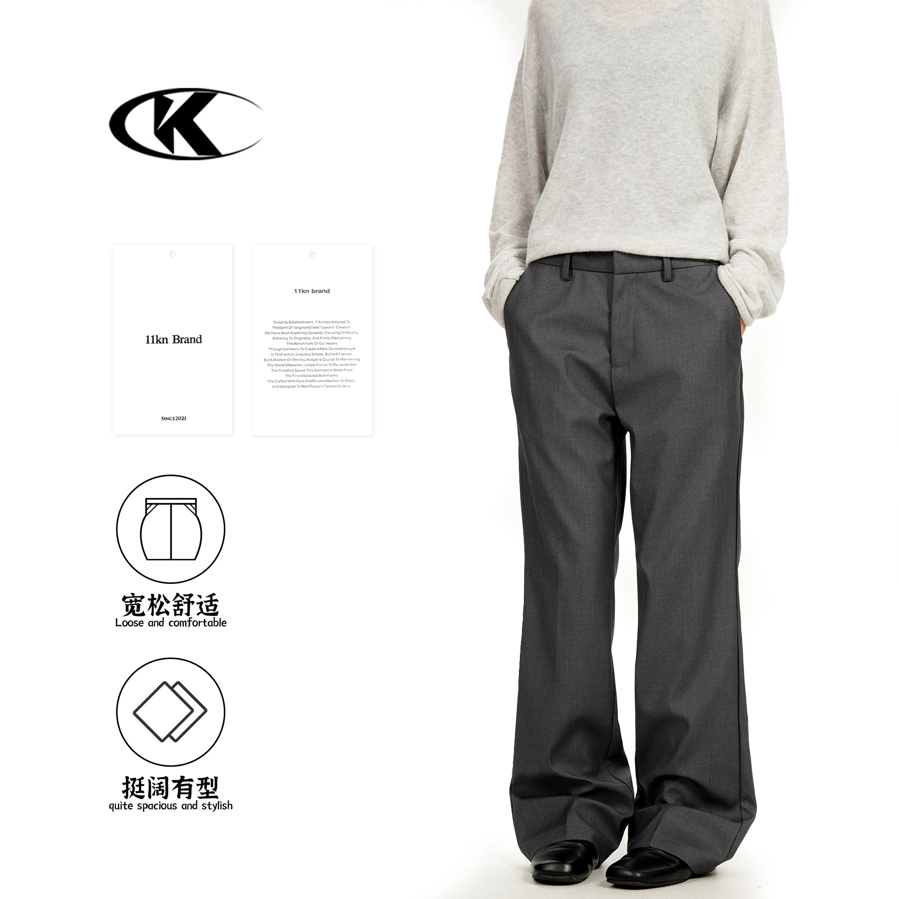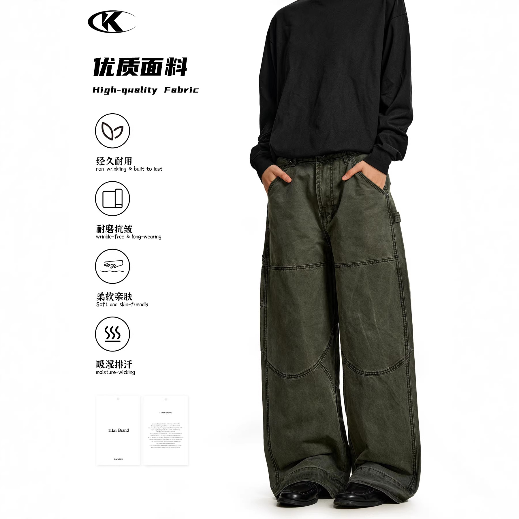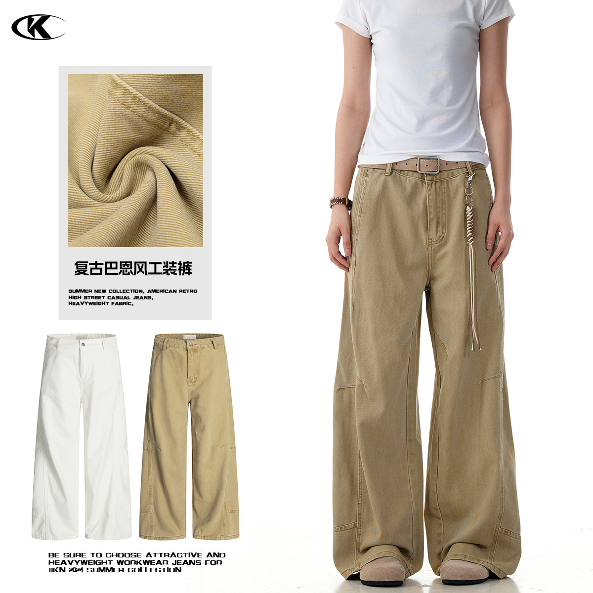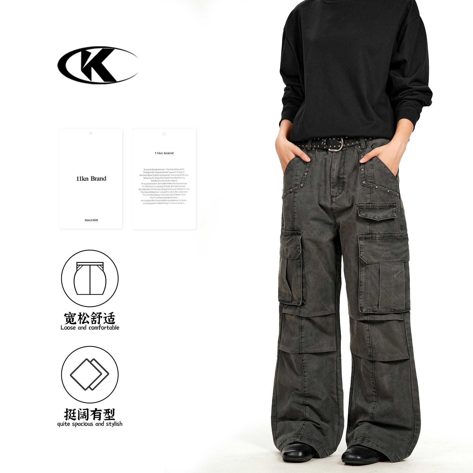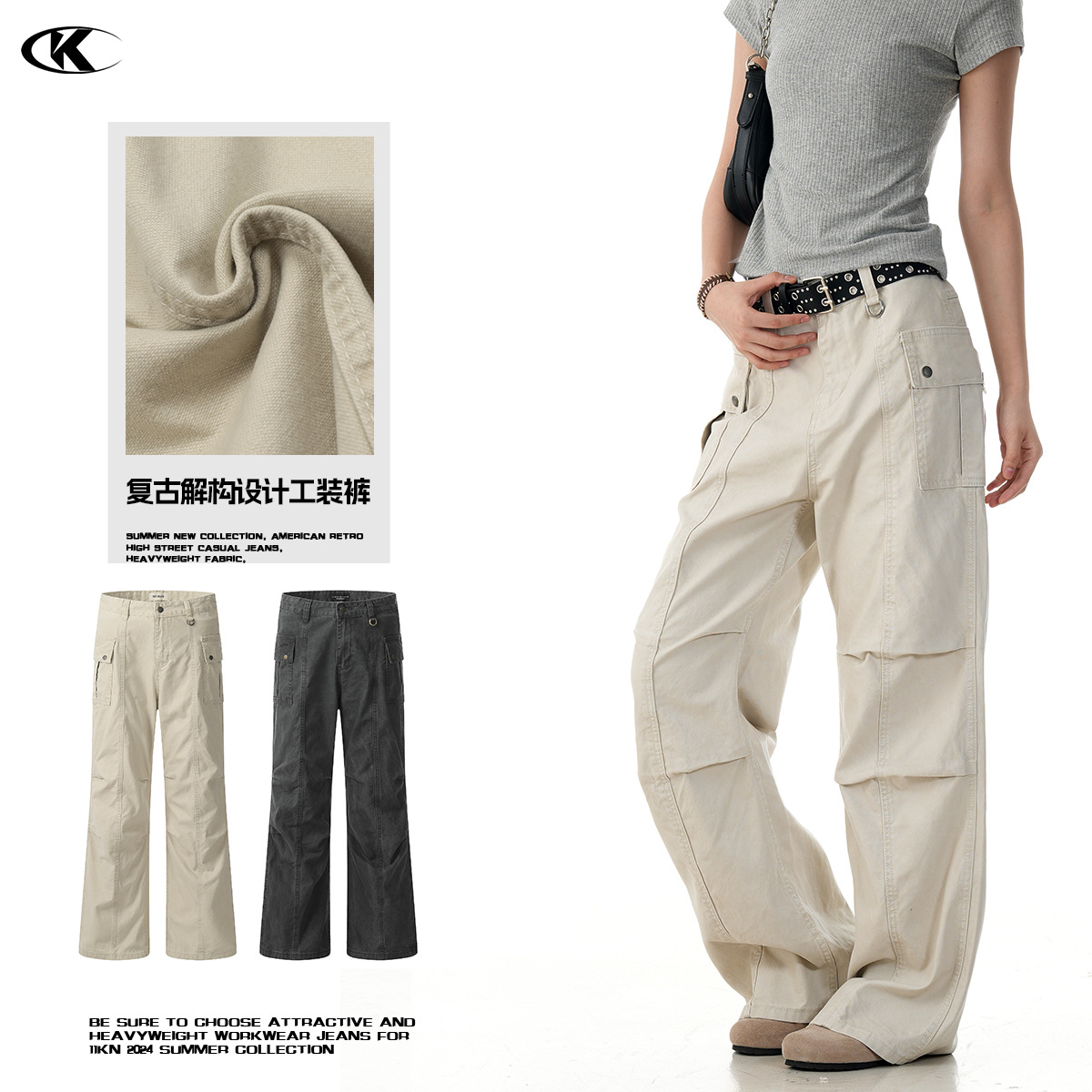 11KN美式复古工装裤男女立体剪裁解构设计感休闲宽松显瘦阔腿长裤