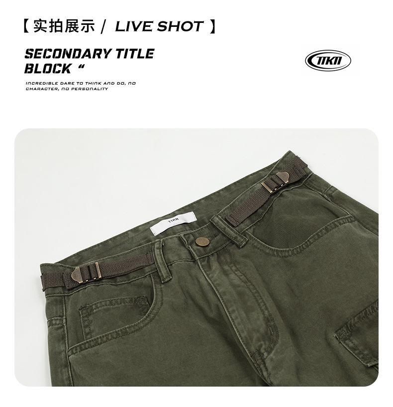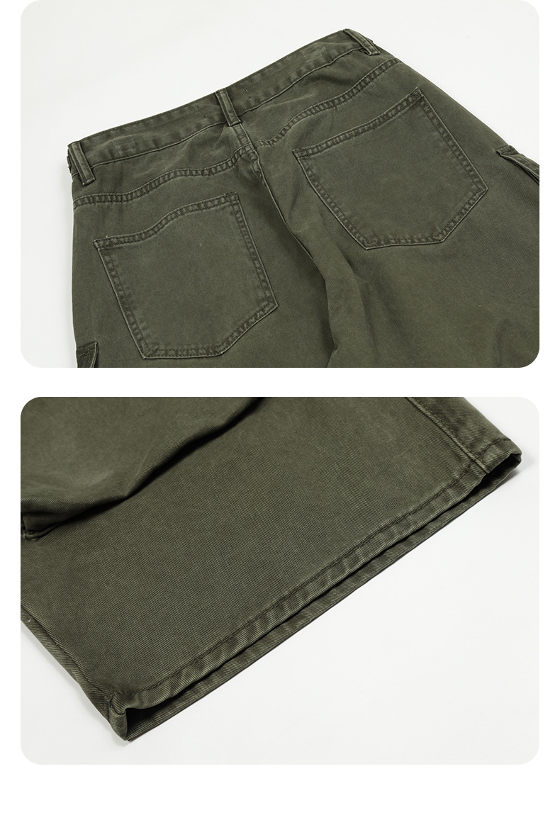 【三色マルチポケット】cleanfitビッグポケットボタンストレートゆるいアメリカの工装ズボン男性ジーンズ潮