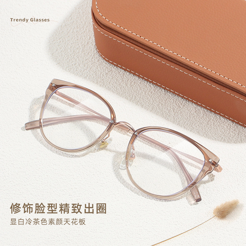 丹陽メガネ超軽量レトロ冷茶色メガネフレーム港風メガネすっぴん近視メガネ女1517