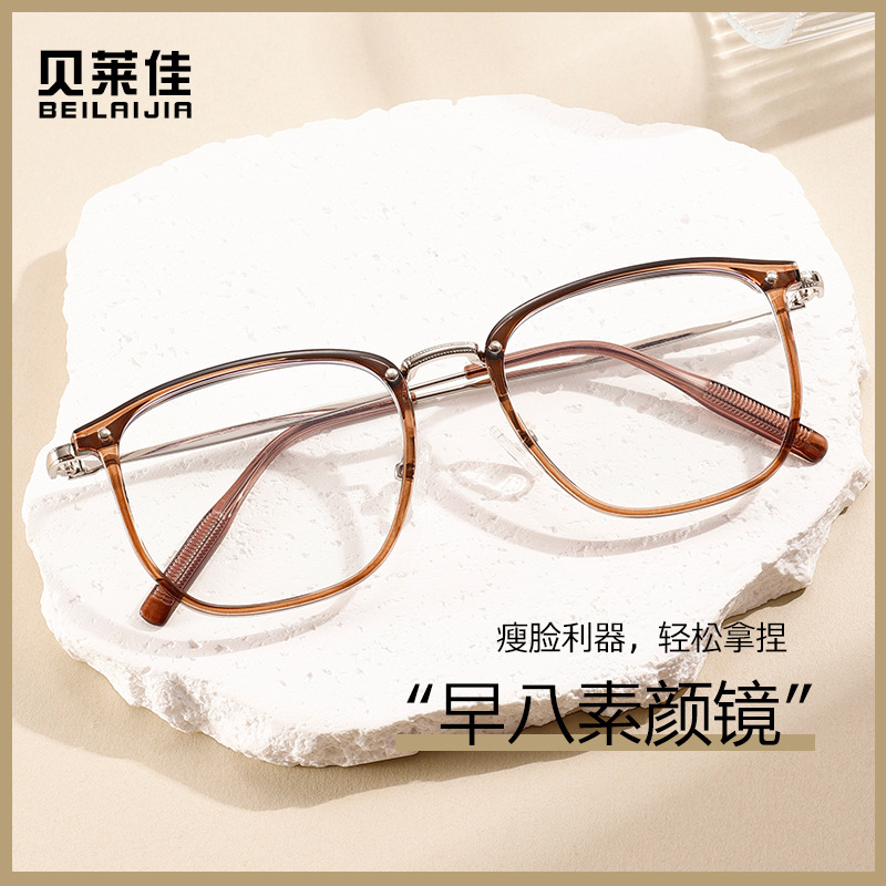 新品TR金属混拼日韩文艺眼镜框男大脸气质近视平光镜架女可配度数
