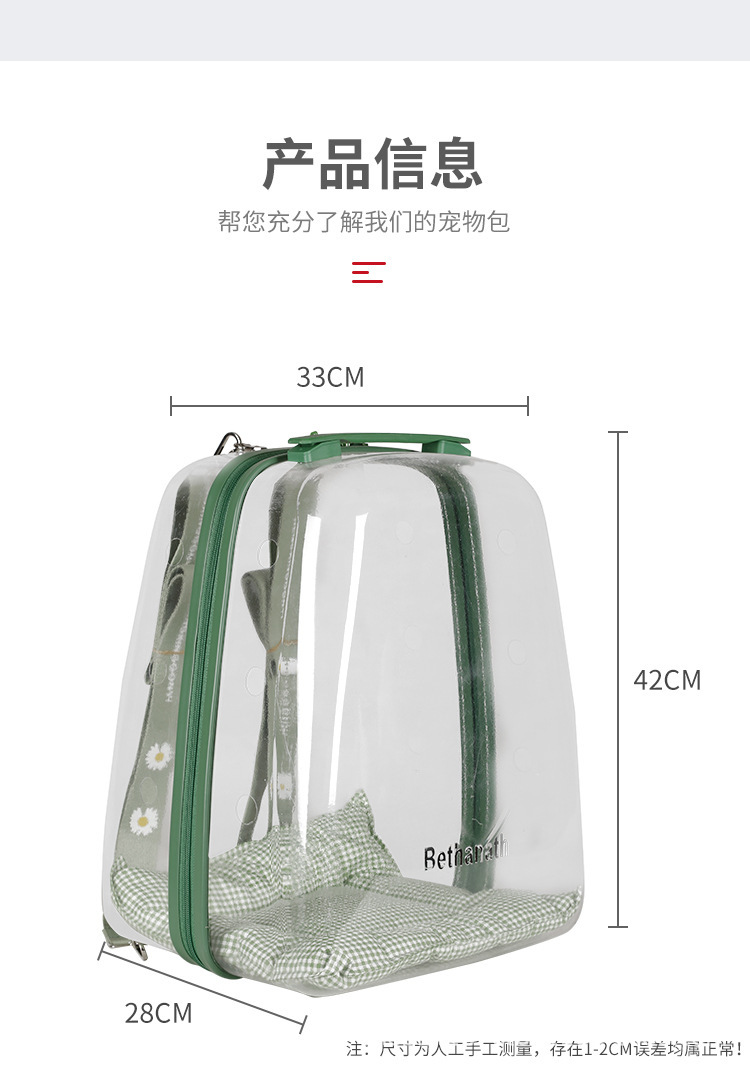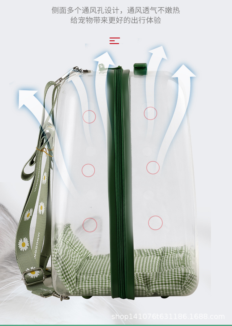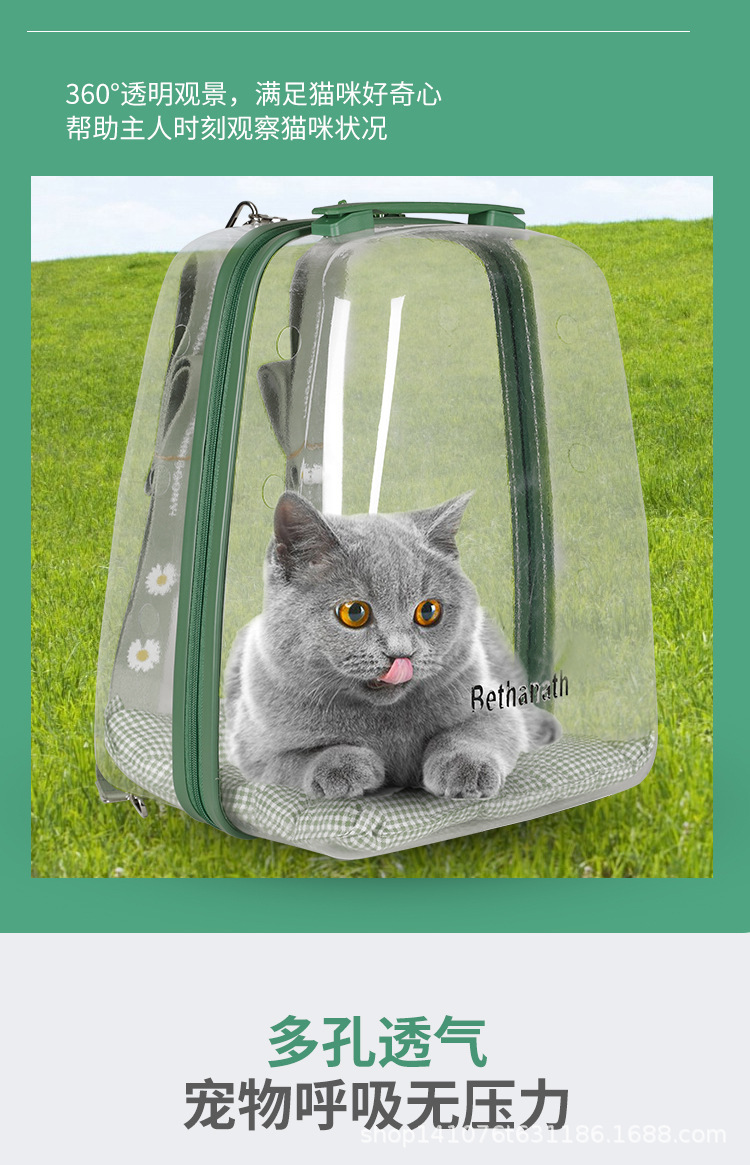 【クッションを送る】通気性のある透明なパノラマの超大空間の肩の猫が外に出ます。