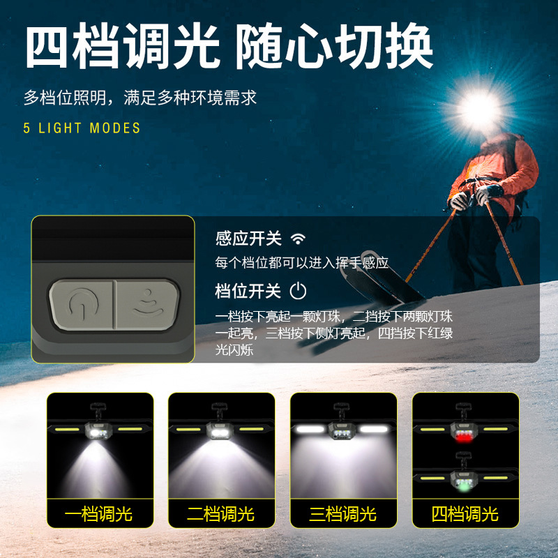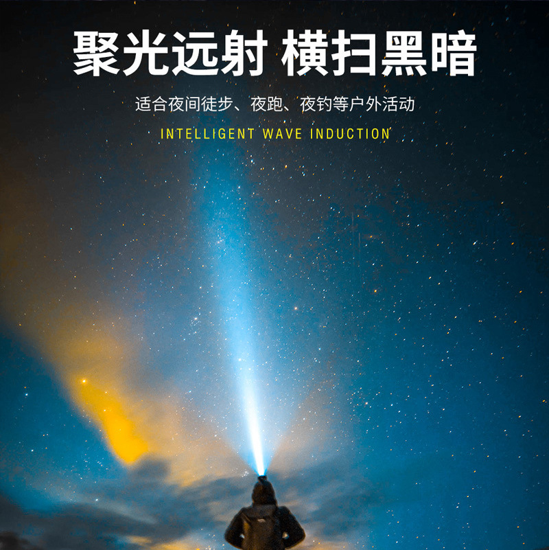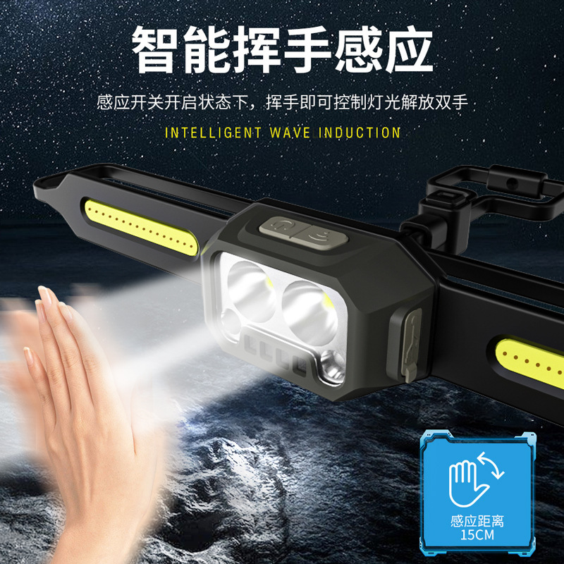 国境を越えた新型led誘導ヘッドライト屋外キャンプの頭に明かりをつけて夜間ランニング釣りシリカゲルのヘッドライト卸売りをした