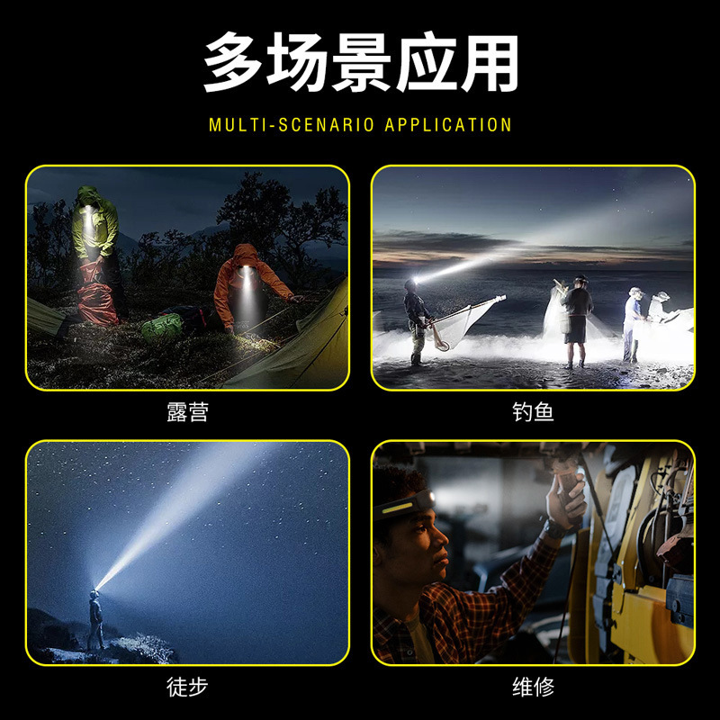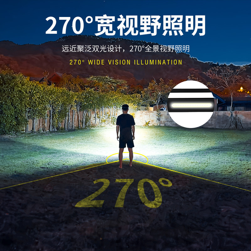 国境を越えた新型ポータブルヘッドライト家庭用ヘッドセット緊急照明屋外誘導帯デジタル表示伸縮ズームヘッドライト