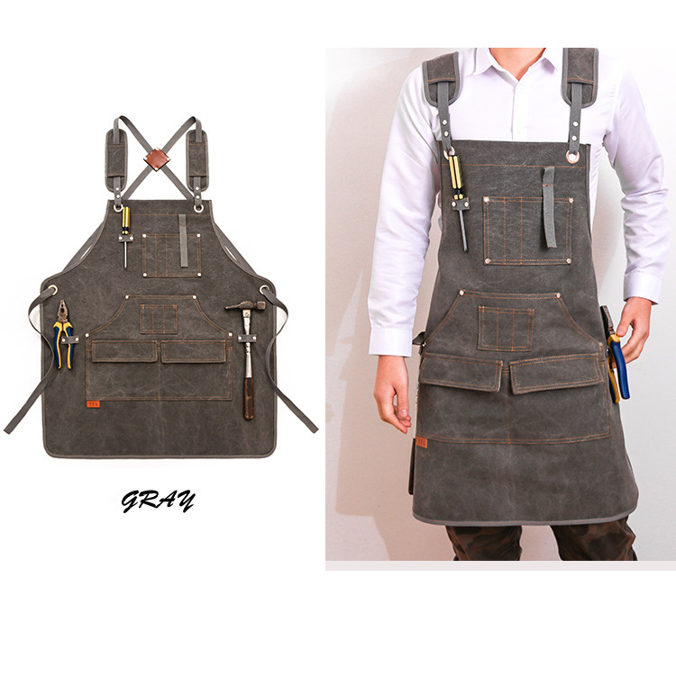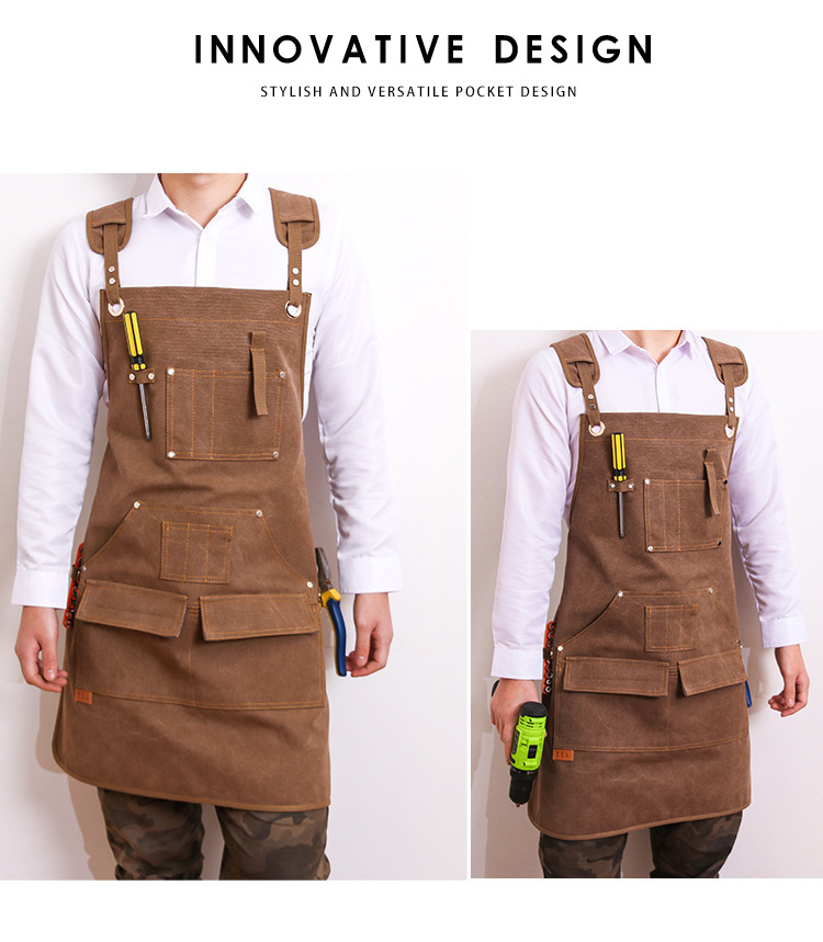 厂家跨境亚马逊户外多功能口袋围裙木工电工烧烤师工作服定制logo