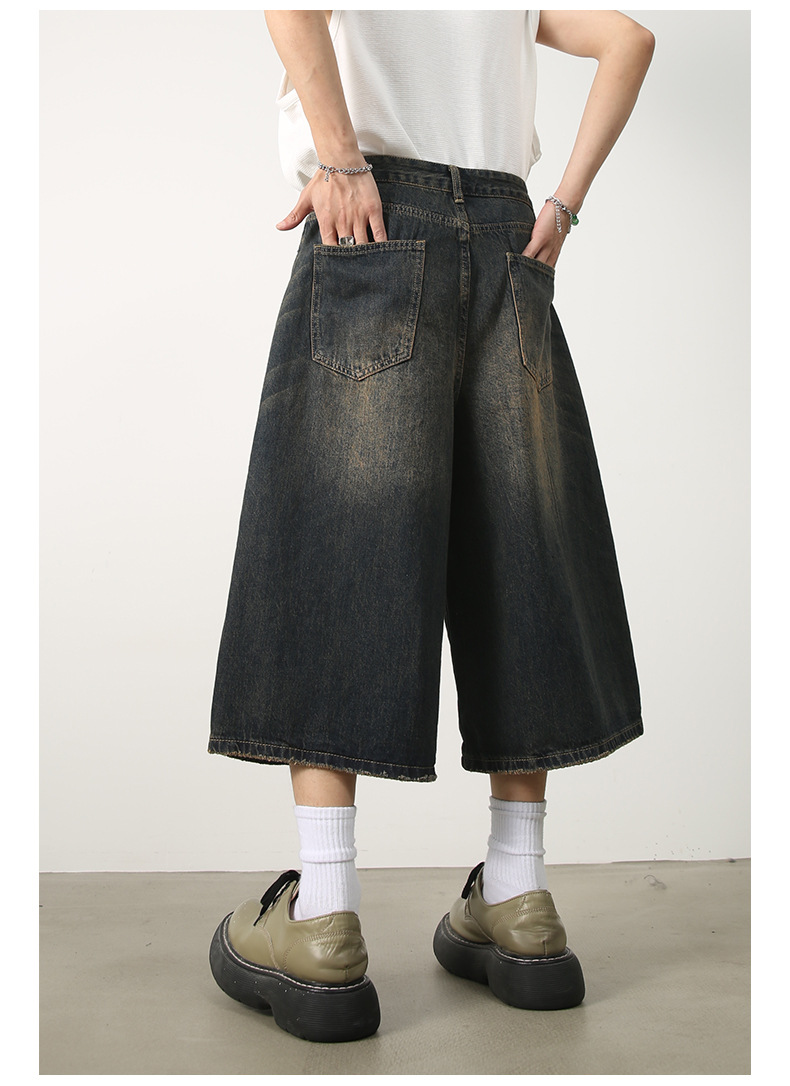 Nirbenデニム | 夏のゆったりとしたシルエットの水洗いレトロな古い7分のストレートデニムのショートパンツ男潮