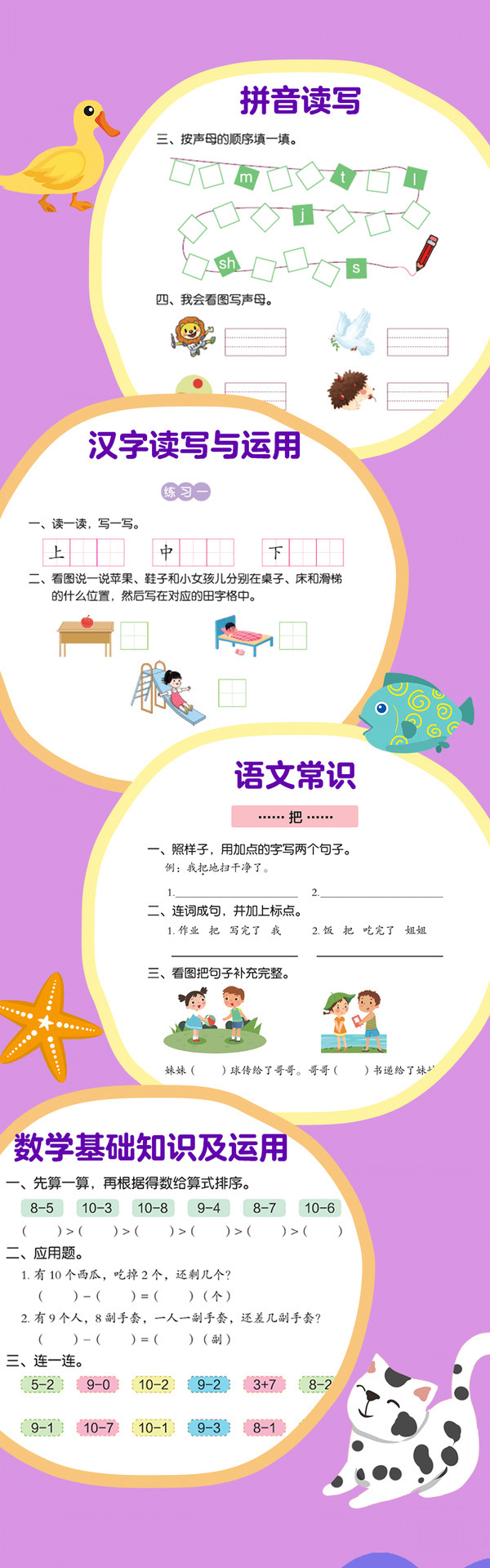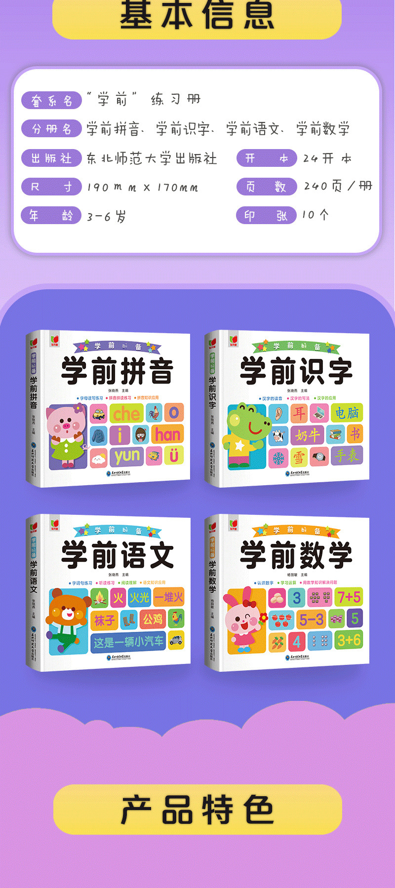 カラー 就学前国語,就学前数学,就学前ピンイン,就学前識字