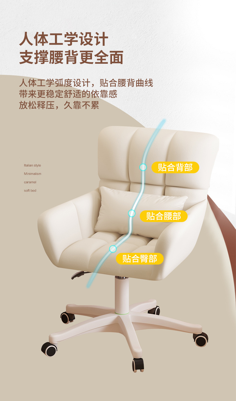 女生电脑椅宿舍椅子卧室舒服久坐书桌椅化妆凳办公直播转椅沙发椅