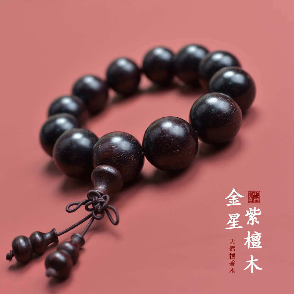 天然老料小葉紫檀手串男満金星仏珠沈香金糸楠木料文游女ブレスレット108