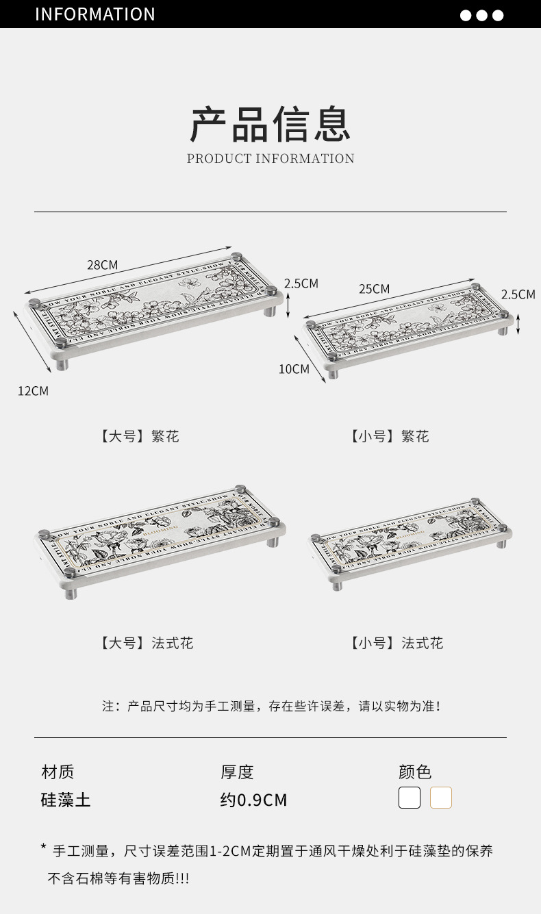 フレンチ式珪藻泥吸水マットバスルームコースター石鹸歯ブラシホルダー洗面セット防湿置物乾燥マットins