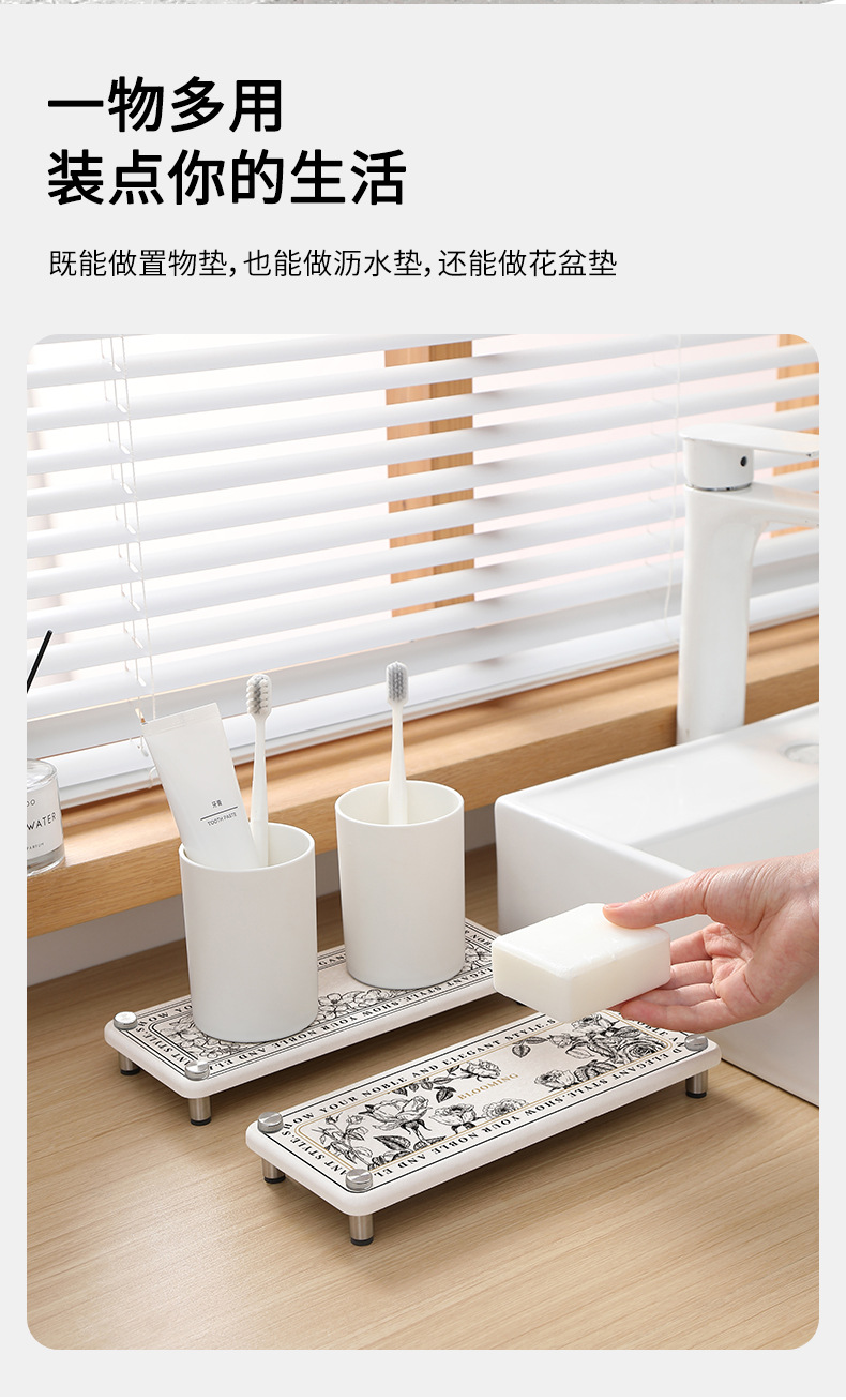 洗手台置物架硬硅藻泥台面吸水垫洗漱台牙刷架浴室漱口杯垫沥水垫