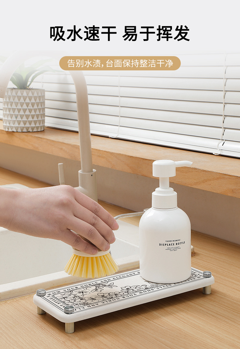 珪藻泥置物棚厨房水槽収納吸水マット浴室洗面台軽豪華大理石紋コースター卸売り