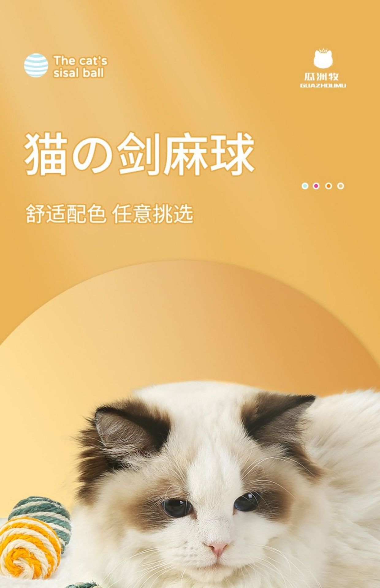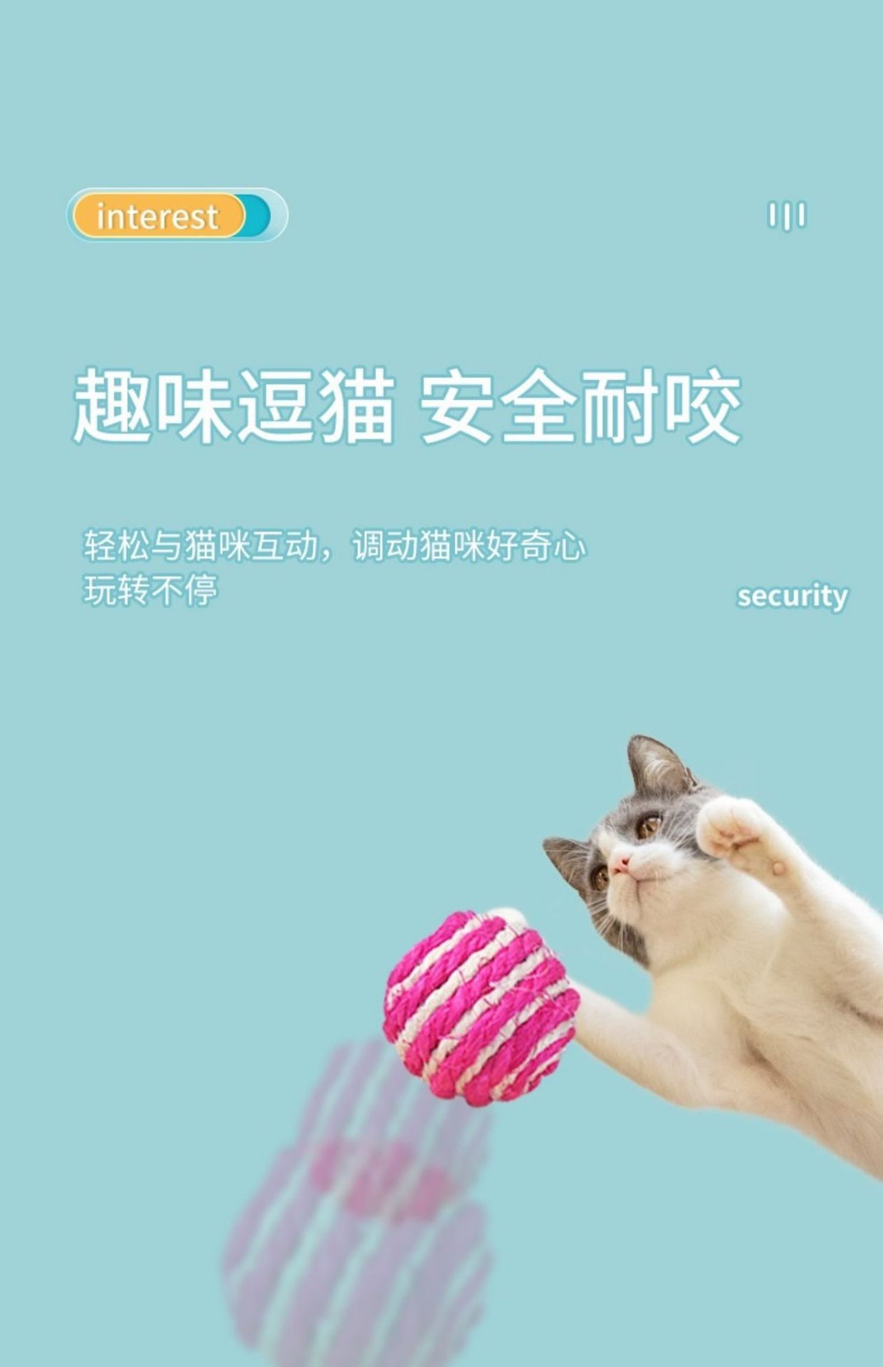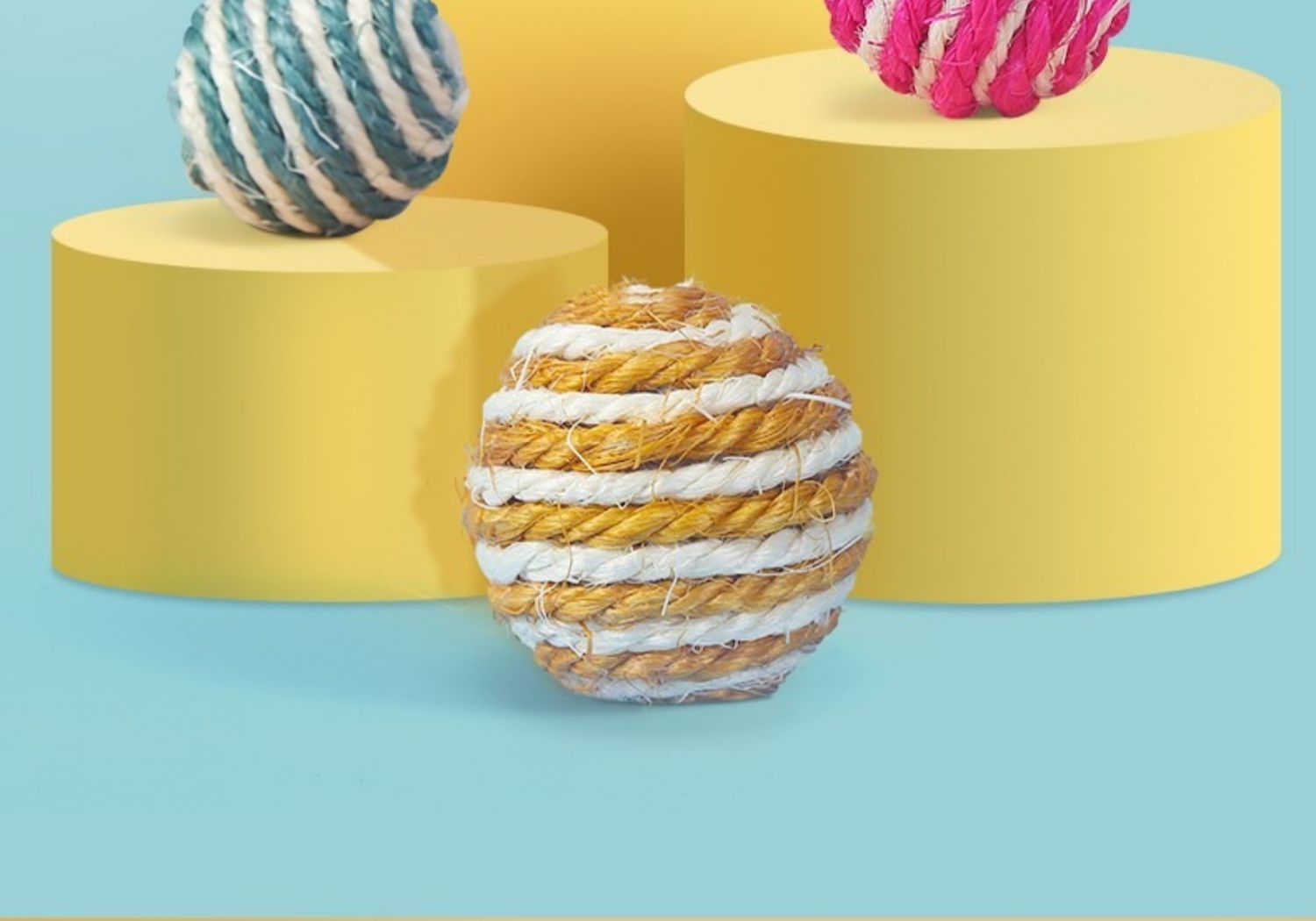 【猫玩具メーカー直供】多色カラー剣麻球猫玩具球猫磨爪耐咬球玩具