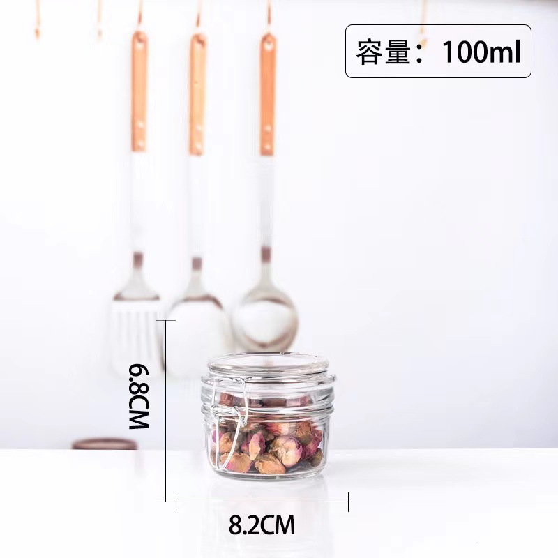 卸売り家庭用食品級蓋付きハンドル付きバヨネット貯蔵缶ガラス密封缶キムチつぼ蜂蜜柑橘瓶