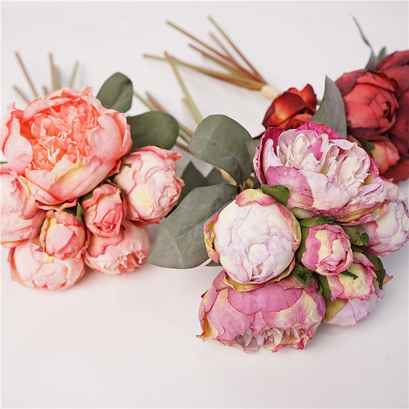 ヨーロッパ式のレトロなシミュレーションの花の単枝の酔っ払いの牡丹の家庭の食事のテーブルの花はシャクヤクの絹の花の結婚祝いの造花の卸売りを並べます。