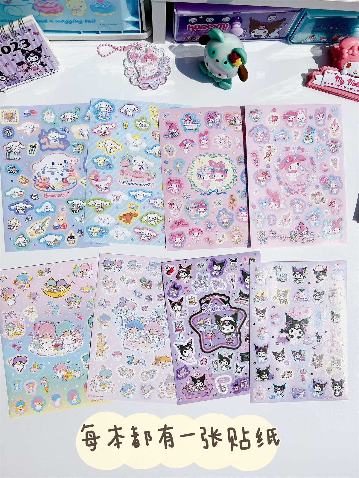 かわいい漫画風グッカーステッカーセット、手帳、子供、学生向け、安価なグッカーステッカー、おもちゃ、細かい砂、レーザーハンドブック