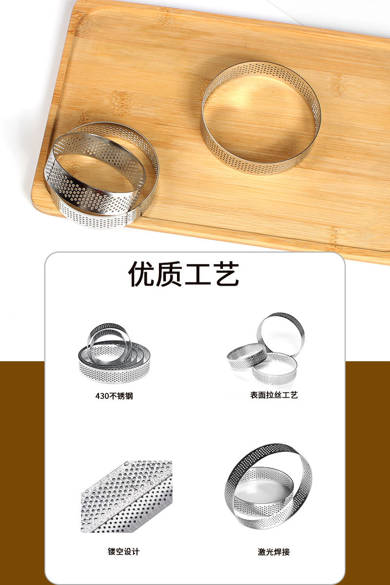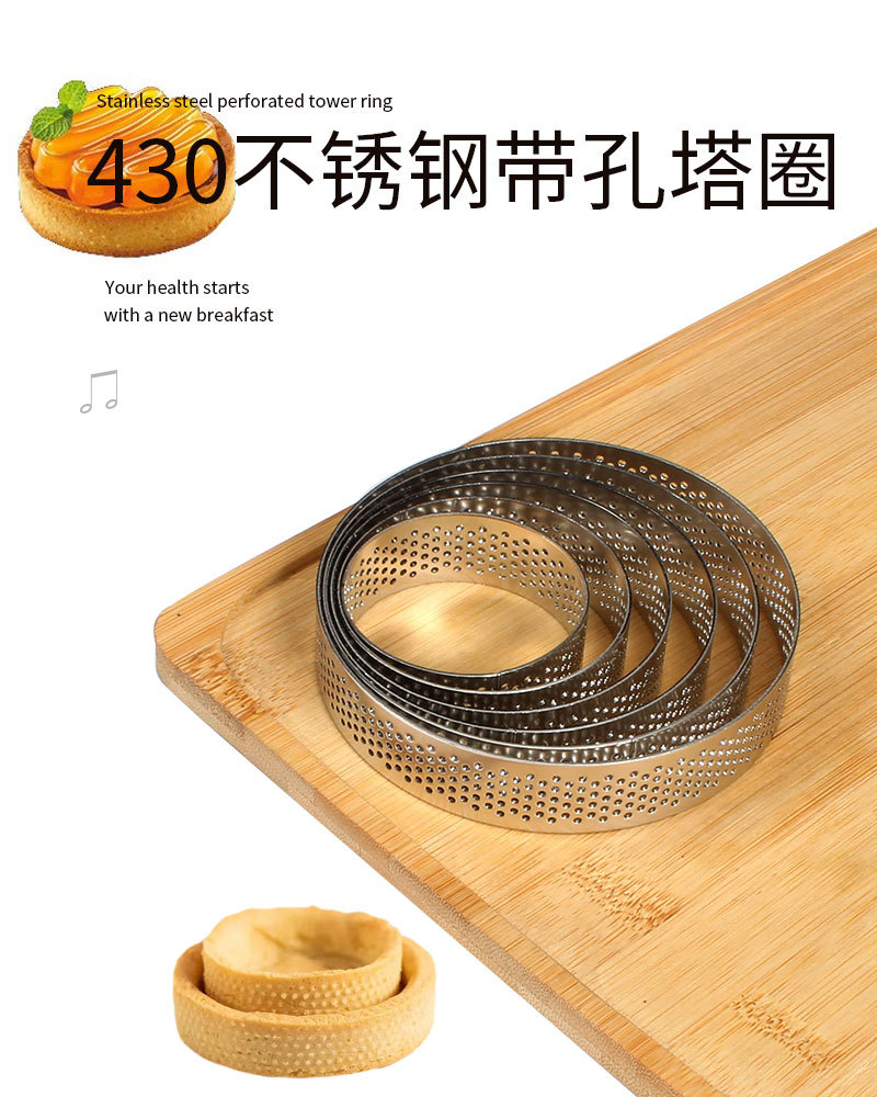 304ステンレス円形パンチムスリング金型穴付きフレンチムスチーズタルトリングケーキリング