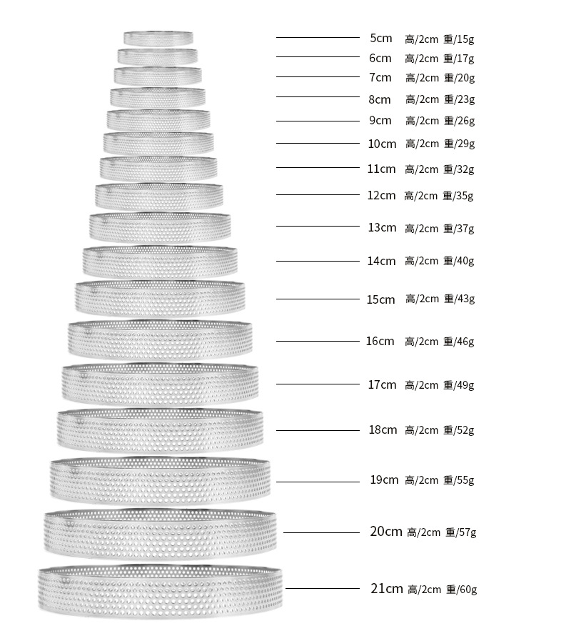 430ステンレス円形穴付きタワーリングパンチフレンチ式フルーツタルトリング5-21cmマルチサイズムスリング餅金型