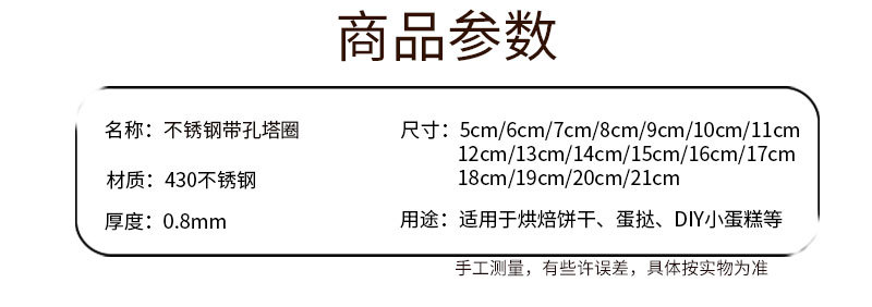 烘焙工具圆形慕斯圈带孔法式塔圈芝士米糕挞圈模具蛋糕圈烘焙用具