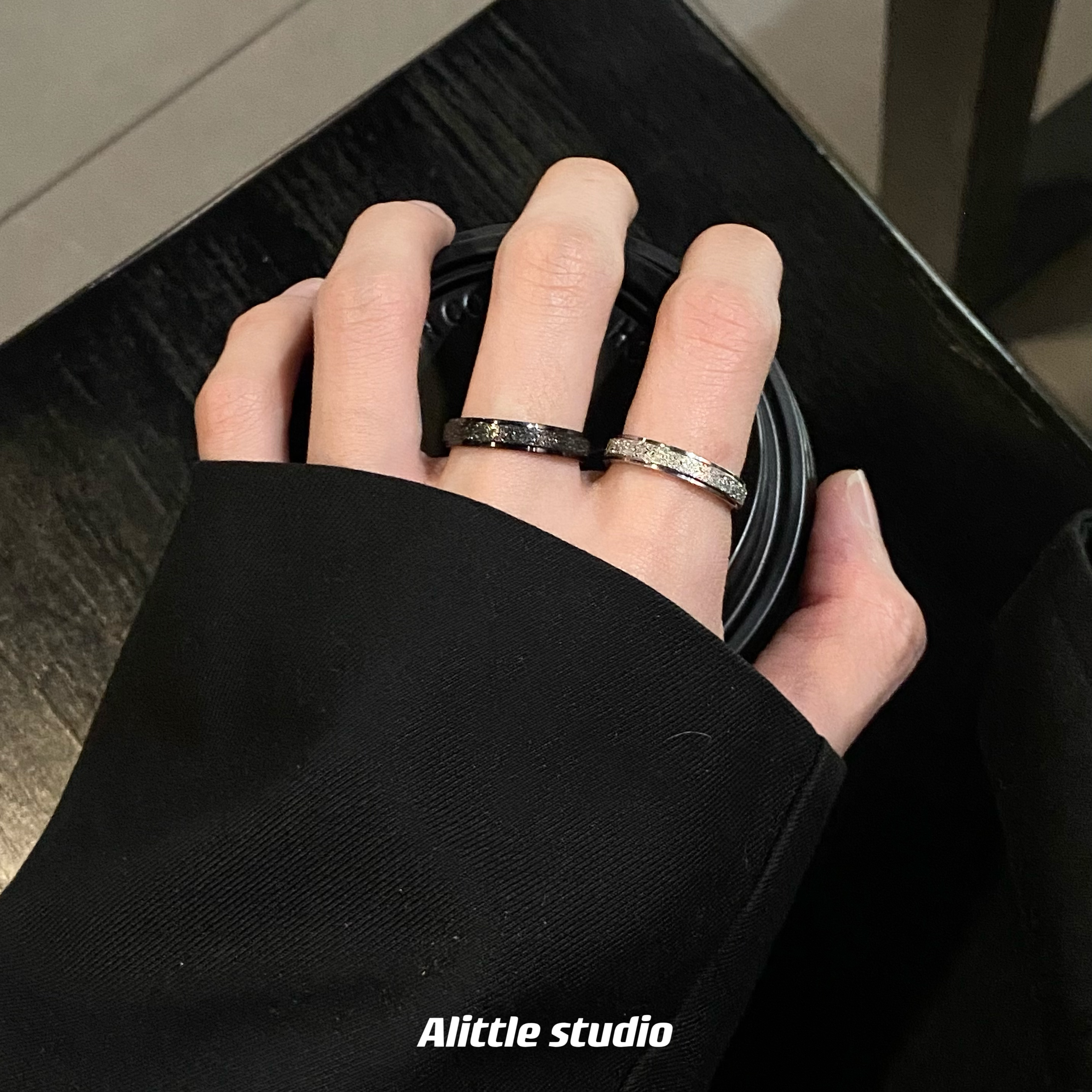オリジナル非黒即白星河指輪男女高級感小衆デザインカップルペアリングチタン鋼色落ちしない指輪
