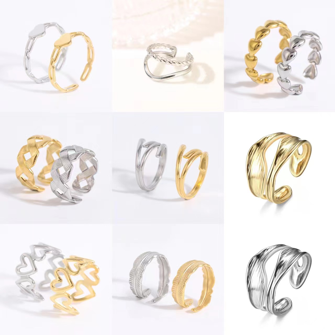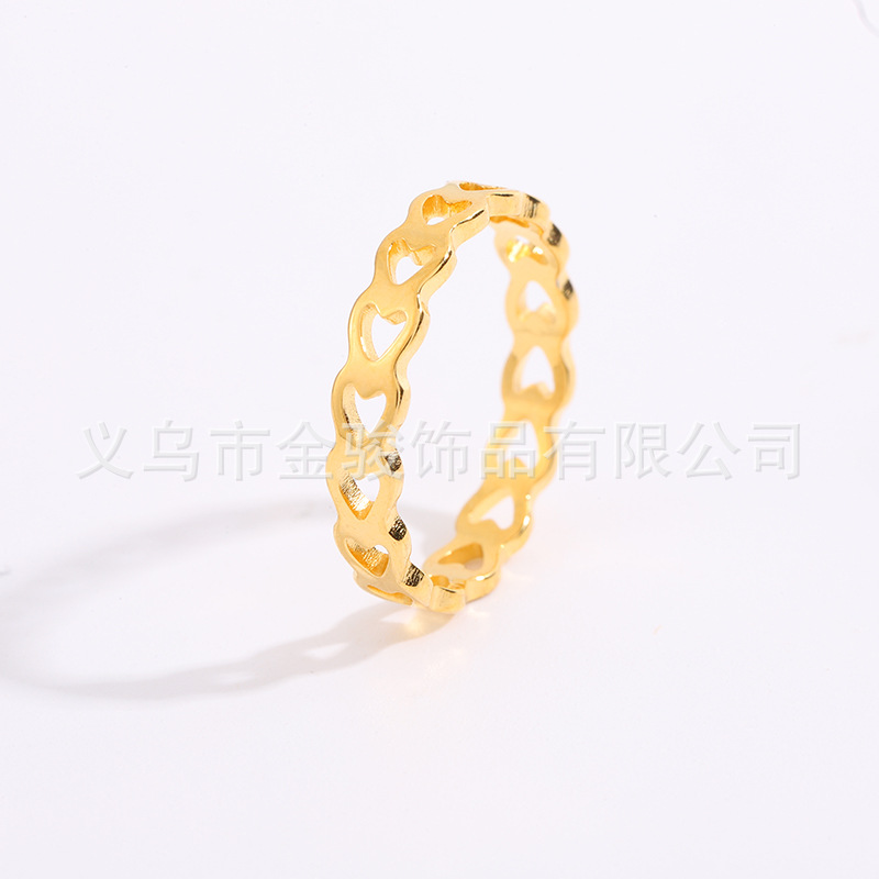 小さくて新鮮なハート型チタン鋼リング18Kゴールド人差し指/小指用ジュエリー、愛の象徴、女性らしい個性、インスタ映え、韓国風ハートリング