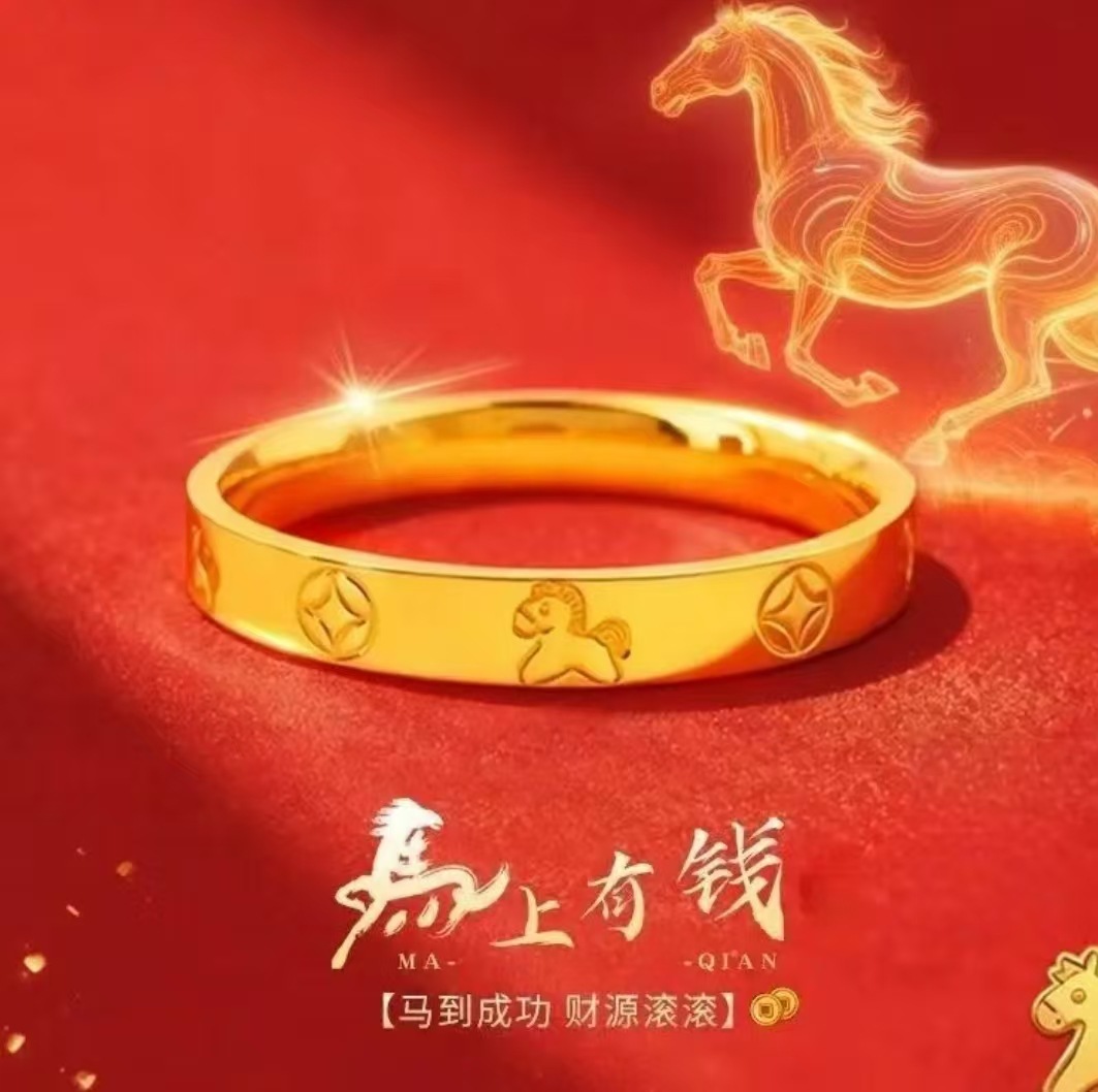 马上有钱生肖马钛钢戒指新中式轻奢本命年招财转运男女指环