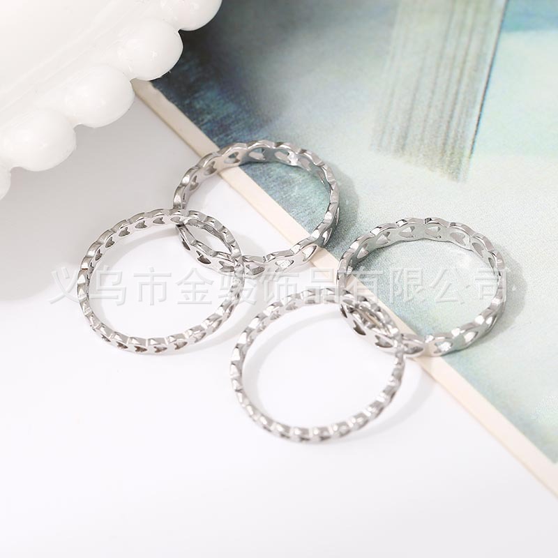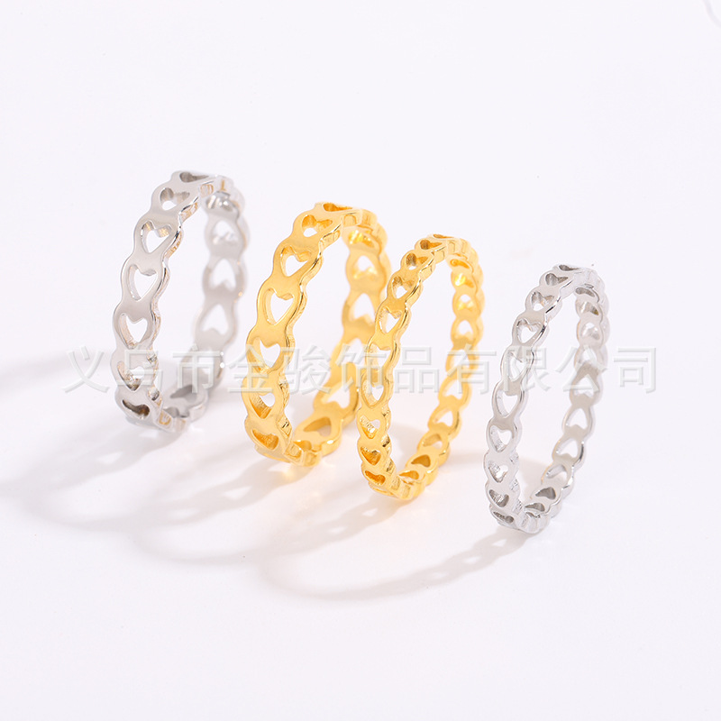 新商品は透かし彫りの小さい清新なハート型のチタンの指輪を切ります。