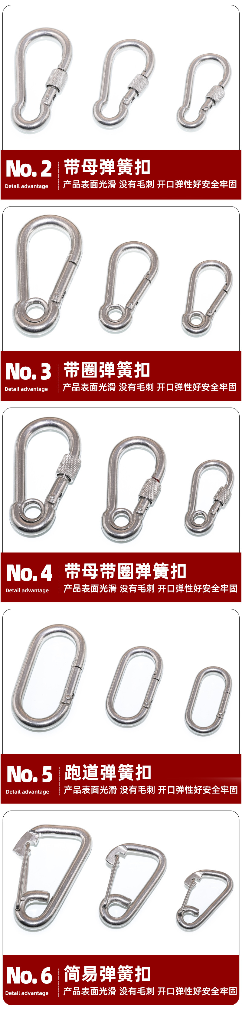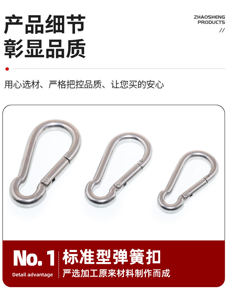 304不锈钢弹簧扣登山扣保险扣安全承重快速扣不锈钢保险弹簧扣
