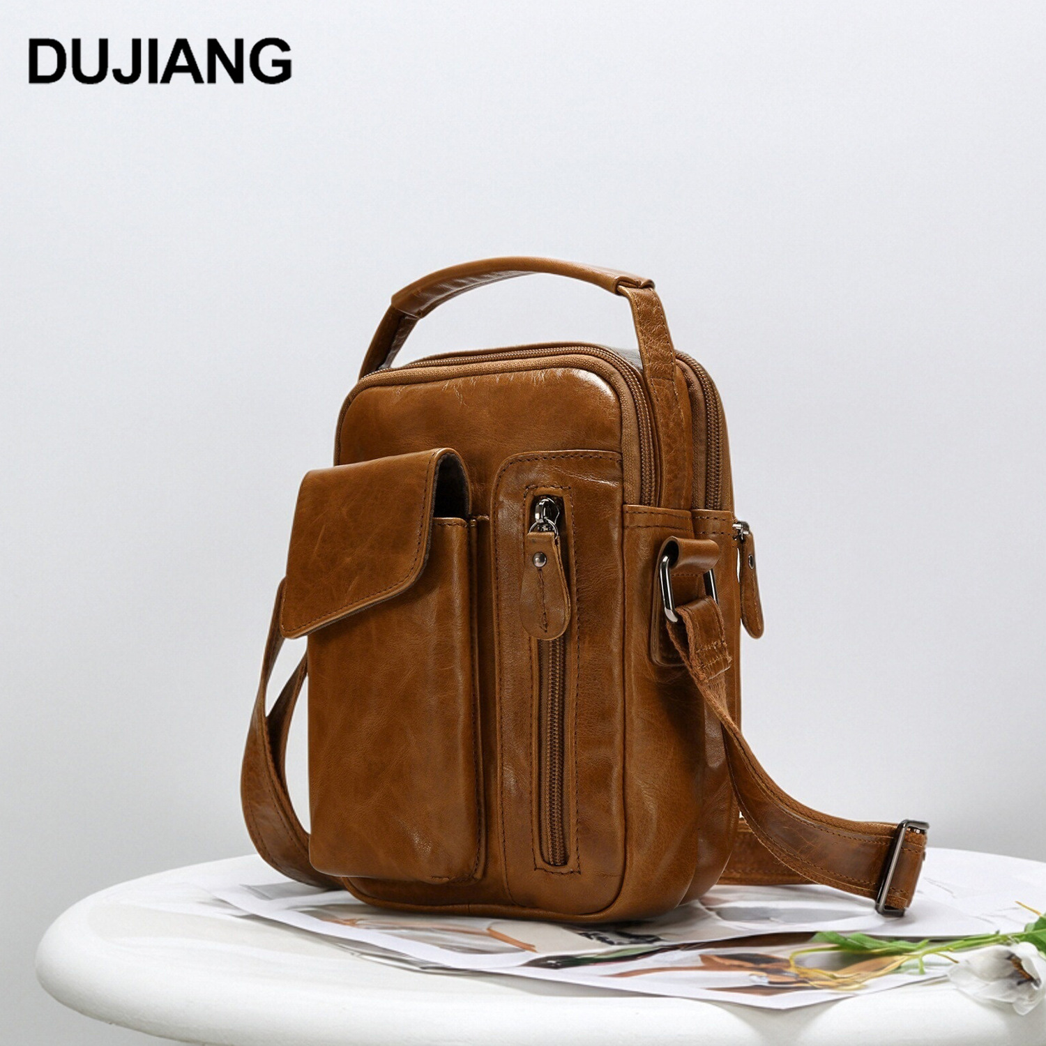 DUJIANG 植物なめし革メンズバッグ本革メンズメッセンジャーバッグヴィンテージタイムクロスボディバッグ男性ショルダーバッグ卸売