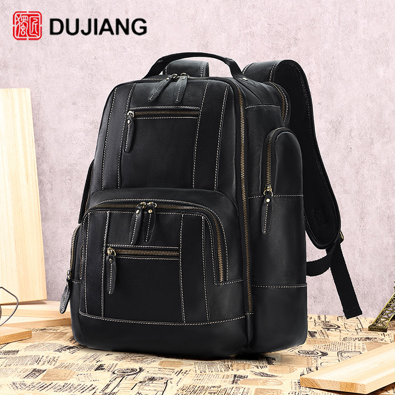 DUJIANG 新しい本革バックパック大容量バックパック多機能コンピュータバッグスクールバッグレトロバッグメンズバッグ