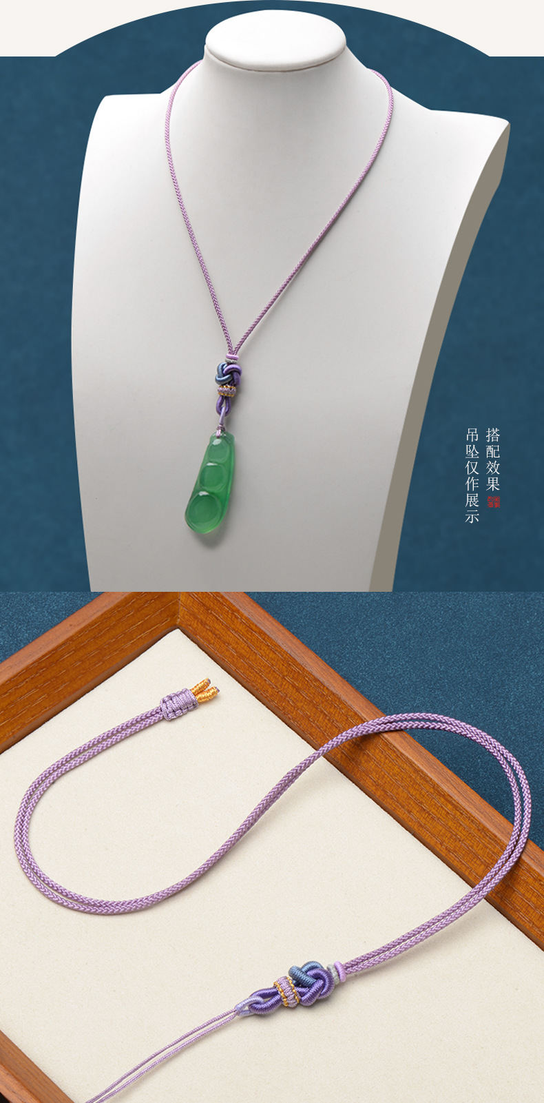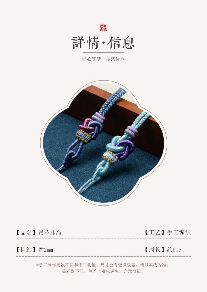 新型手編みの小さなペンダントロープと田玉翡翠の平安ボタン玉ペンダント編みのネックレスロープはペンダントのストラップを調節できます。