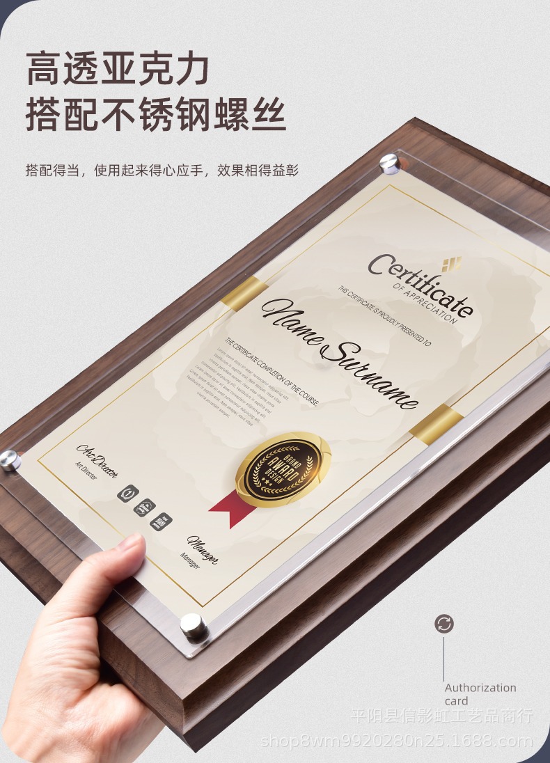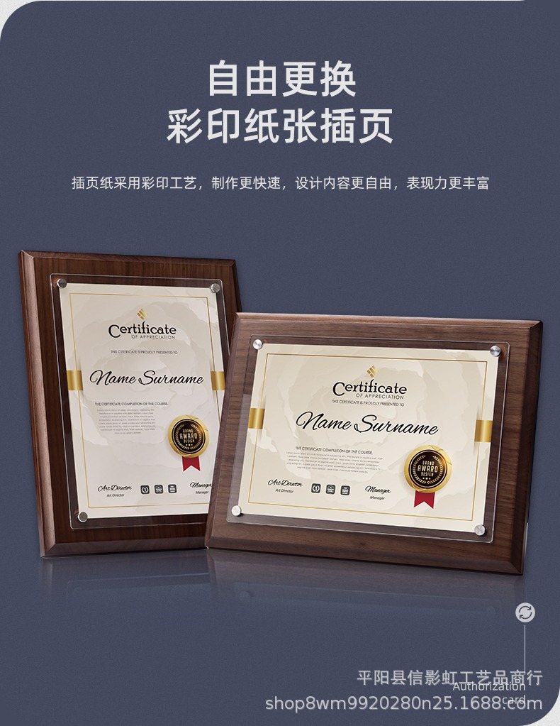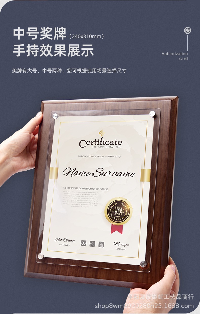 名誉プレート クルミ材メダル クリエイティブ認定プレート 木製トレイ 名誉優秀サプライヤープレート 企業証明書制作