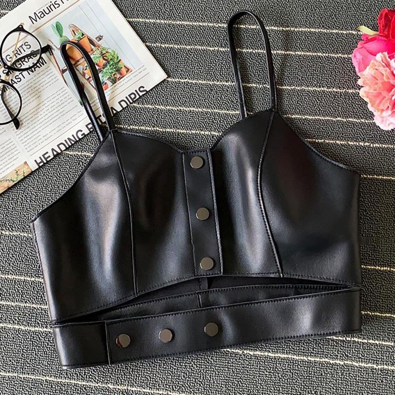 女の子の韓国版pu皮のサスペンダーの小さいベストの春と秋の背中はしっかりとしています。