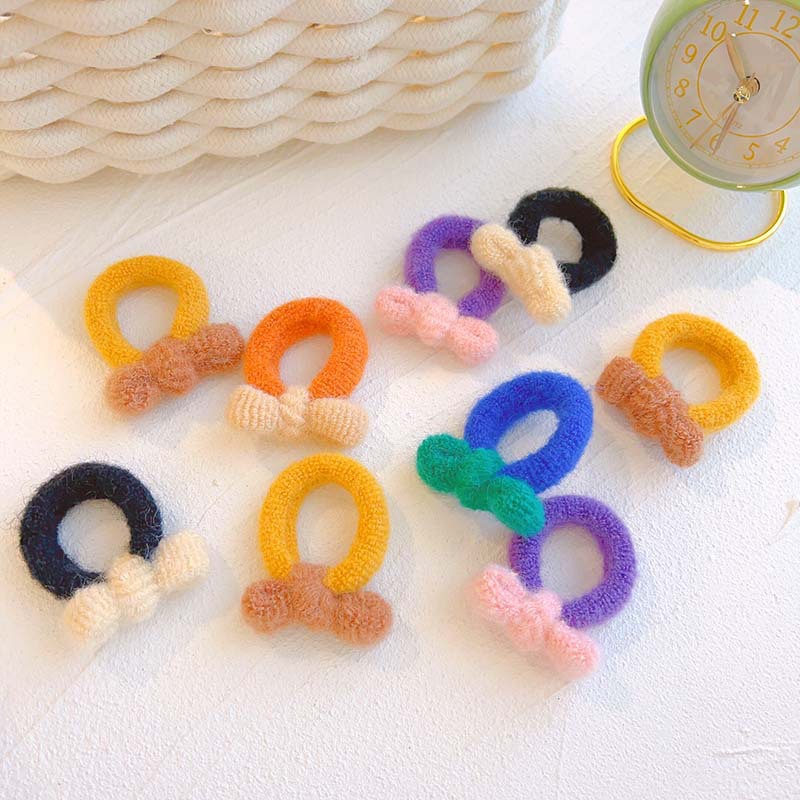 ふわふわとした蝶結びのタオルリングの髪紐が可愛い少女の髪紐の高弾力ニットの皮筋の髪飾り