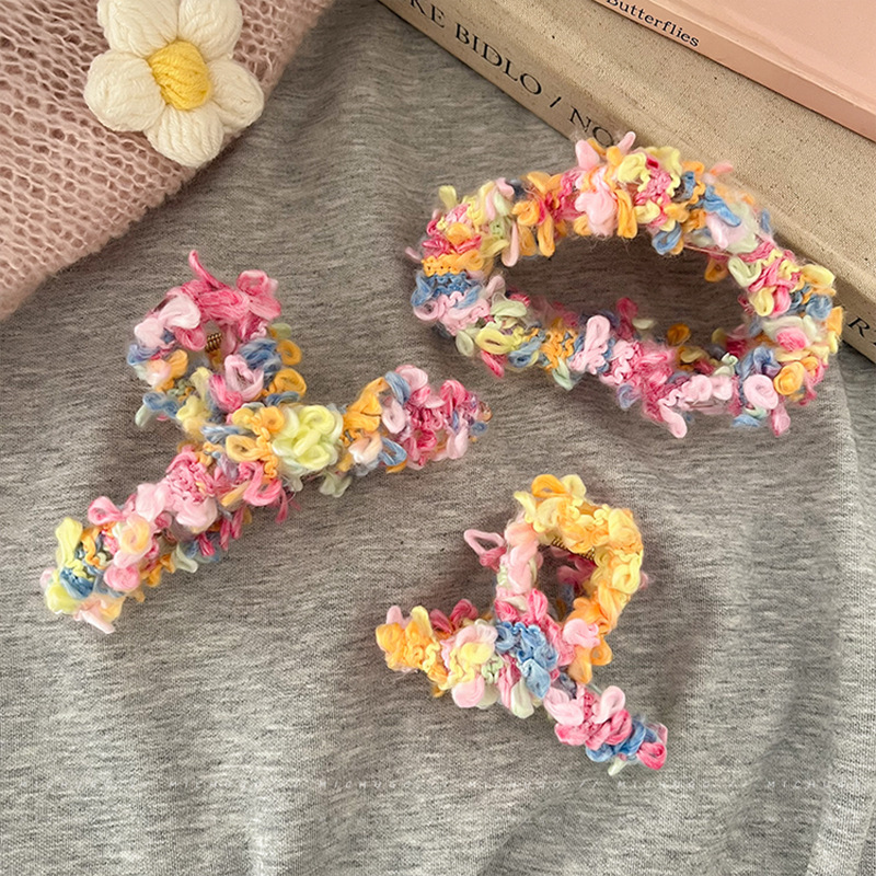 ドーパミンカラー毛糸ヘアクリップ少女感大サイズサメクリップ後頭部ヘアクリップかわいいヘアクリップ