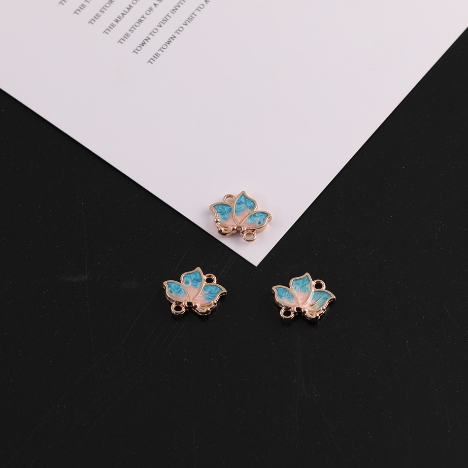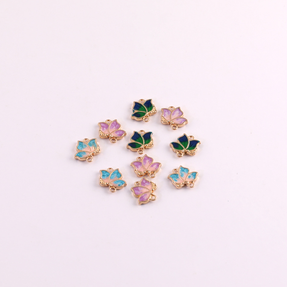 简约合金双面滴油立体小蝴蝶荷花挂饰diy自制发饰吊坠饰品配件